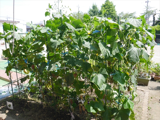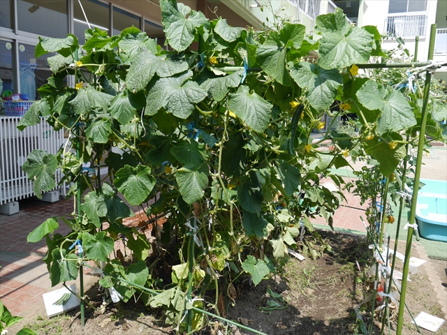 27日(金)にアップし忘れましたが、園庭のプランターで育てている「きゅうり」や「なす」がまた実ったので、朝収穫しました。園庭の野菜プレゼント第12弾ということで、27日(金)に保護者の皆さんにまたお裾分けしました。(^_^)v