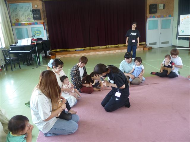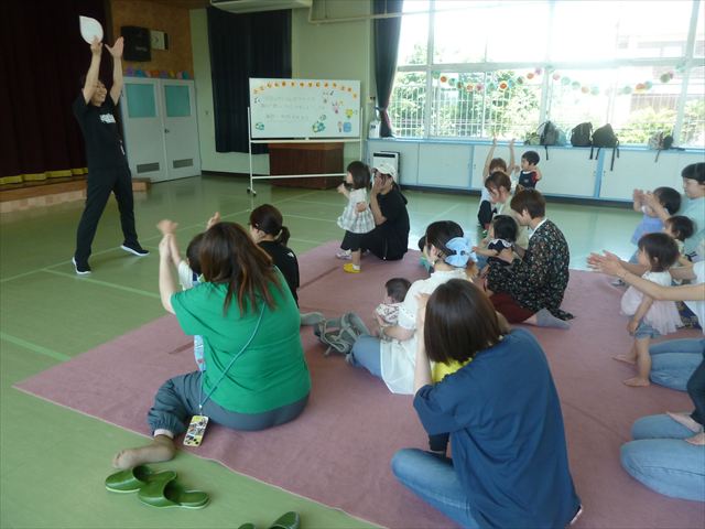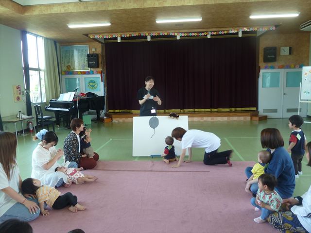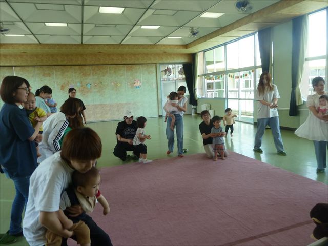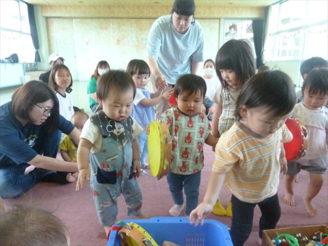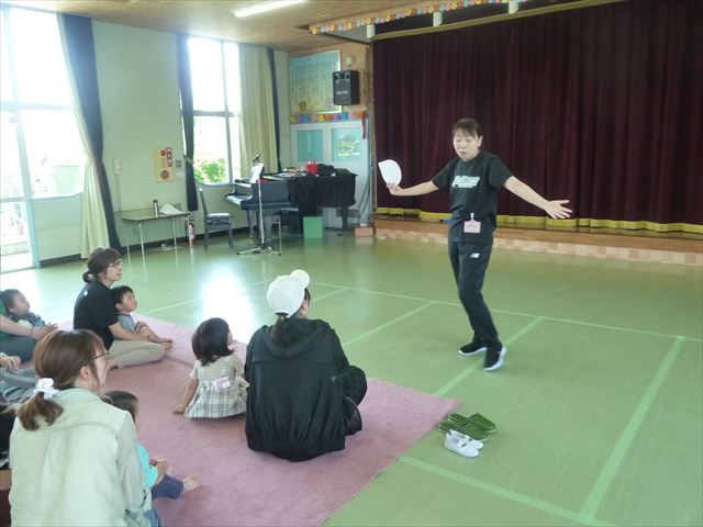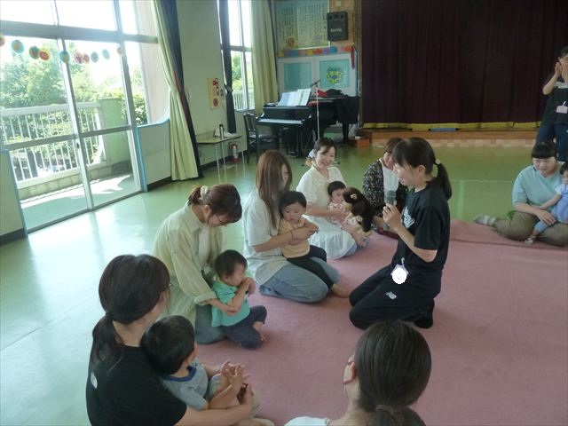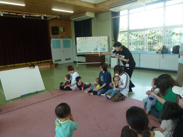 今日のさくらんぼクラブは、ともえ先生による「親子で楽しくリトミックをしよう!」でした!タンバリン、すずなどいろいろなものを使い、楽しく体を動かしていただけたでしょうか?ご参加いただきましたみなさん、ありがとうございました♪次回のさくらんぼクラブは、6月13日(金)「幼稚園のお友だちと一緒に遊ぼう!(幼稚園体験・園内遊び)」です!0歳児からでも大歓迎ですので、ぜひお気軽に遊びに来てください(