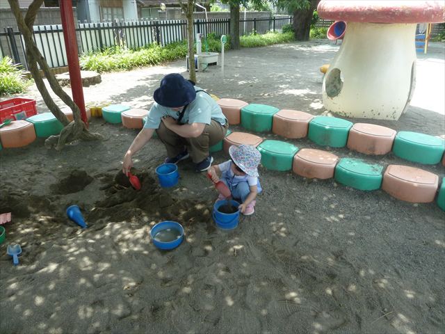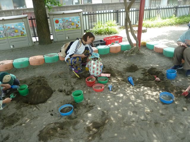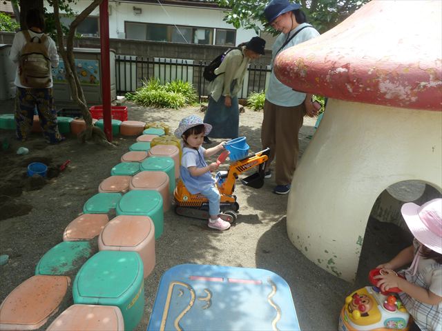 午後はプールに入って遊びました。気温も高く気持ちよく入る事が出来ました。顔を水につけられる子が増えてきて水の掛け合いも激しくなっているように感じました(笑) ※明日もプールに入る予定ですので水着の準備をお願いいたします。