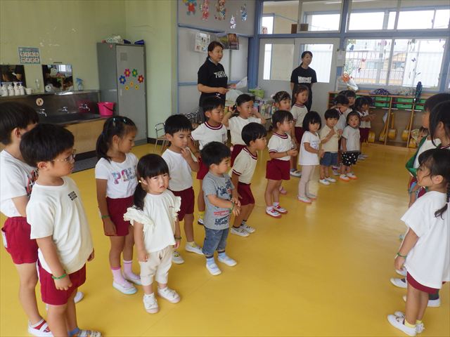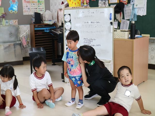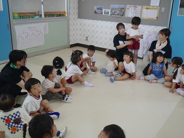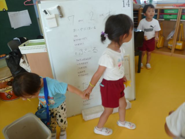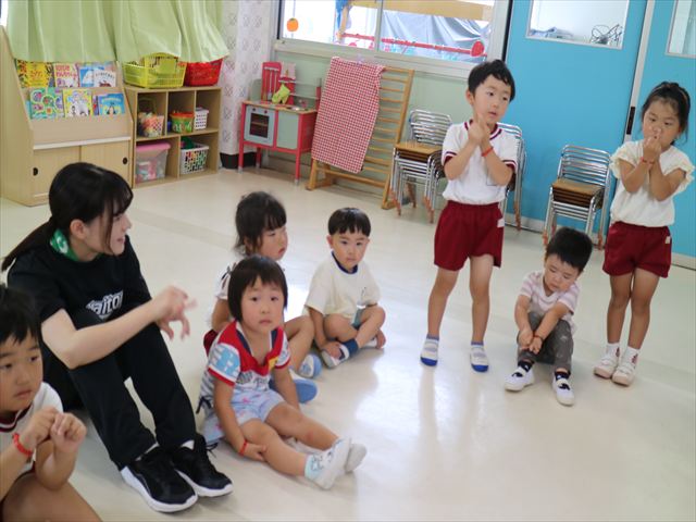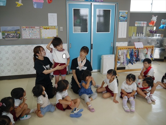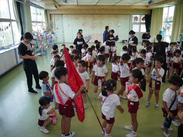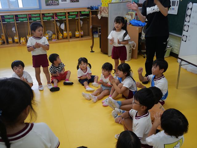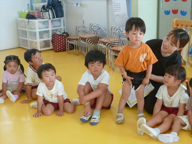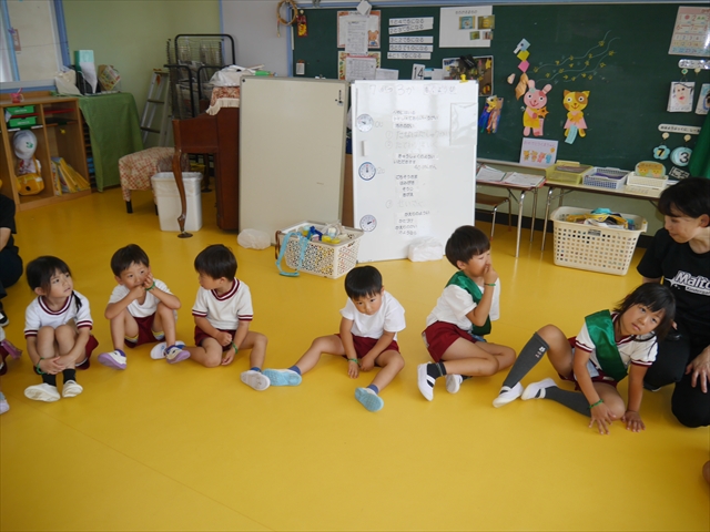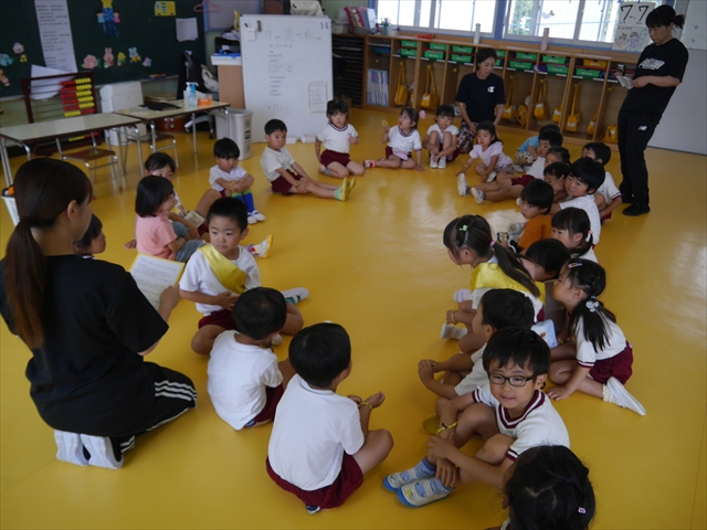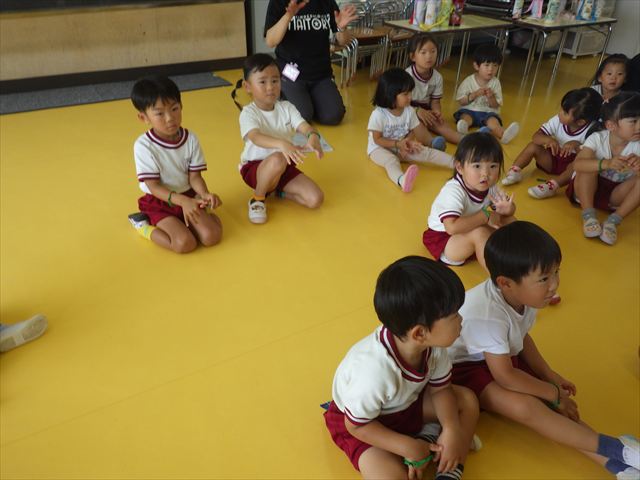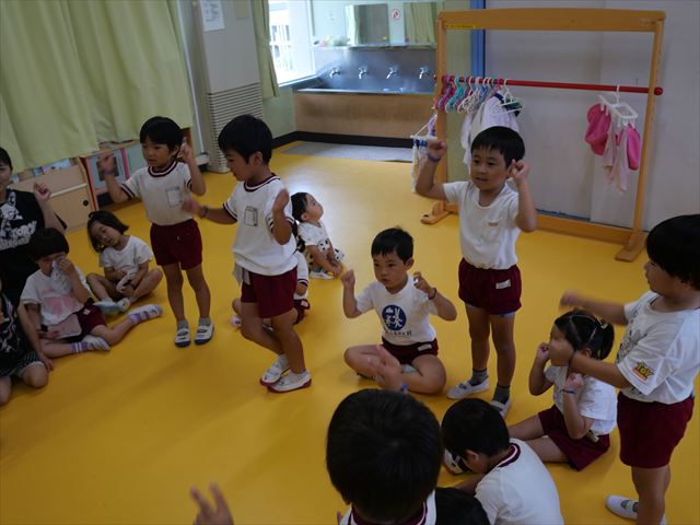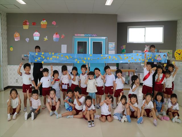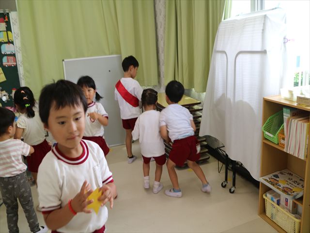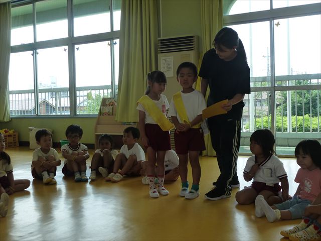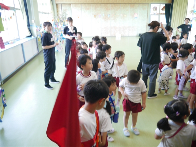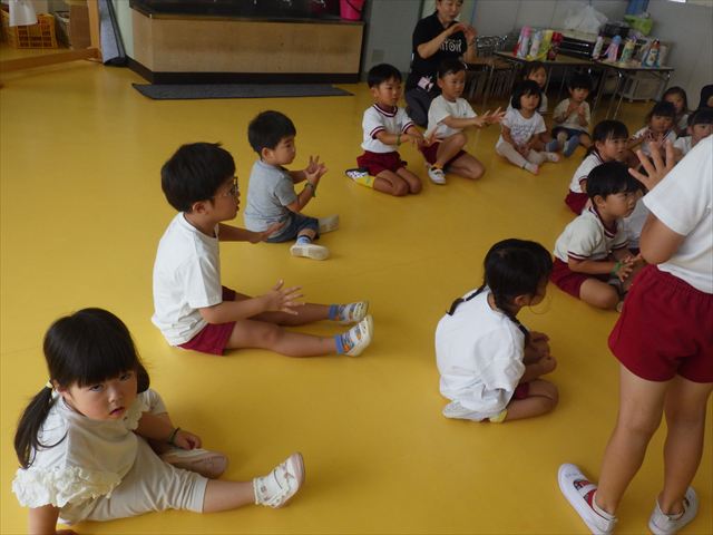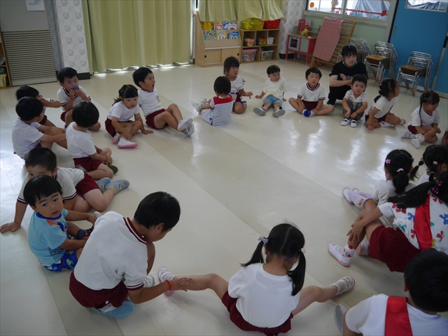 今日の第3回は、初めてたんぽぽさんたちが参加するので、「自己紹介」をしたあと、仲間意識を高めるため「手遊び」や「宝探し&天の川を作ろう!」などを行いました。年長さんがリーダーとなって年中さんや年少さん、たんぽぽさんたちの面倒を見ながら、みんな仲良く楽しく遊べたようで何よりです! (^^)b ヘ(^o^)/ (*^^*)