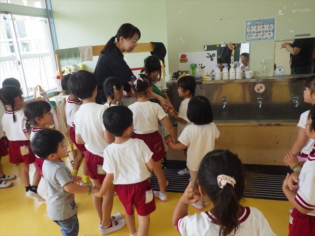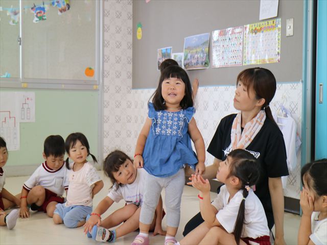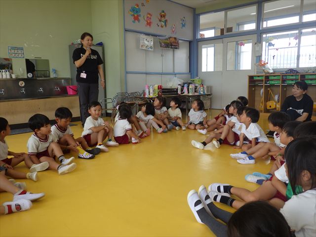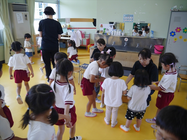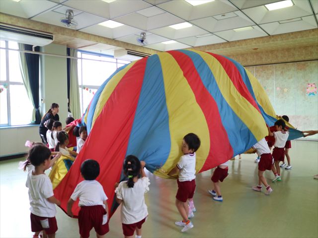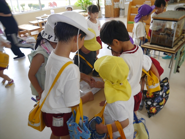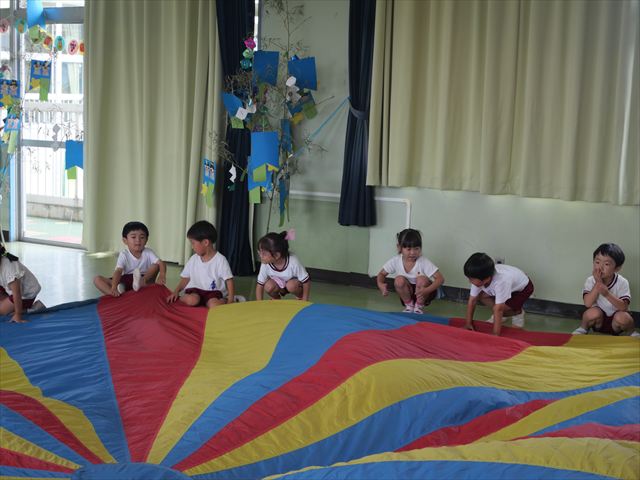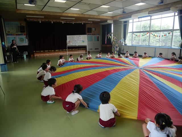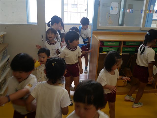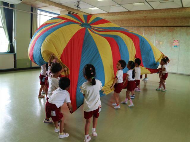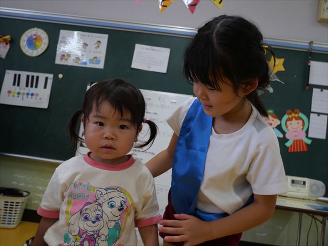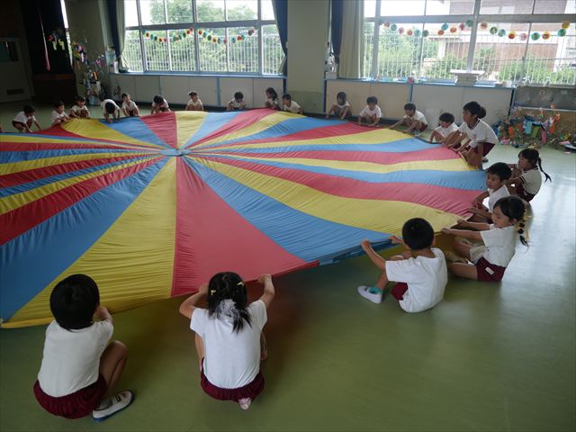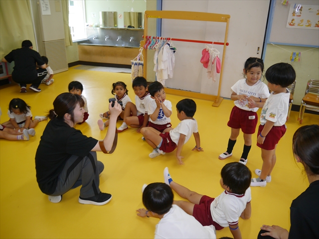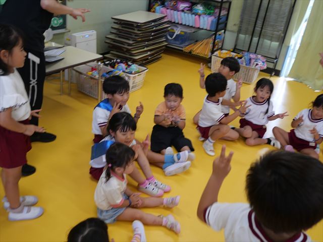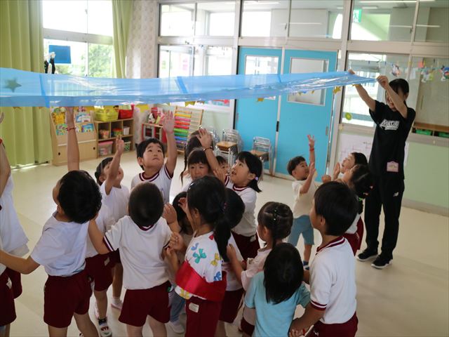 今日は、第3回縦割り保育活動を行いました。今回からちょっと成長した「たんぽぽさん」たちも参加しました。本園では「魅力ある幼稚園」を目指して、「縦割り保育活動」を推進しています。縦割り保育活動の教育的意義・教育効果の良さを踏まえ、一貫性・統一性のあるものにし、年上園児のリーダーシップや自主性・主体性、年下園児の協調性や行動力を育み、上下関係の人間関係の良さを体験させ、子どもたちの日常の保育に生かしていきたいと考え、回数も増やし、内容も改善しながら実施しています。
