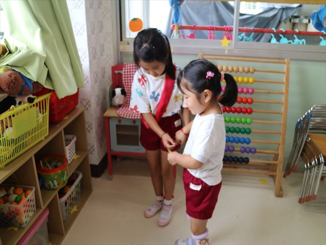 今年度もその縦割り保育活動の成果を保護者の皆さんにもお見せするため、「運動会の開会式・最初の種目(縦割りリレー)」に縦割り保育活動を取り入れて発表します。運動会を楽しみにしていただければと思います!!(^_^)b