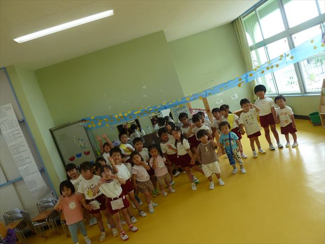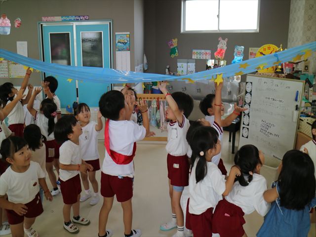 今日は、七夕の4日前ですが、マイトリーの子どもたちの願いを込めて「七夕集会」を行いました。遊戯室に竹飾りを飾り、全園児が集まって行いました!ヘ(^o^)/ (*^_^*)