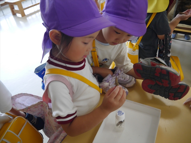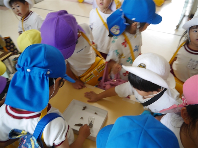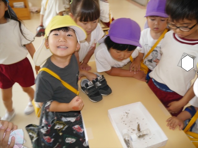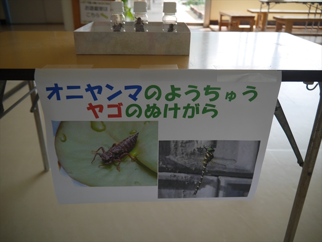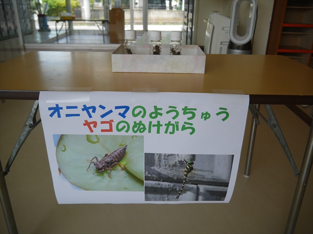 オニヤンマのヤゴ(幼虫)の抜け殻をいただきましたので、展示しました!みんな初めて見たらしく、興味津々でした!ヘ(^o^)/