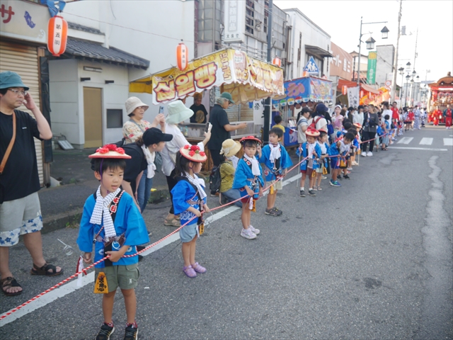 この伝統行事「大間々祇園まつり神輿渡御稚児行列」は、人生で幼稚園年長時代でしか体験できない、一生に一度の子どもたちの記念になる滅多にない機会です。はっぴを着て杖を突きながら、大間々町大通りを親子仲良くねり歩くという貴重な体験をしてみては如何ですか?園としても当日対応しますよ!(^_^)v