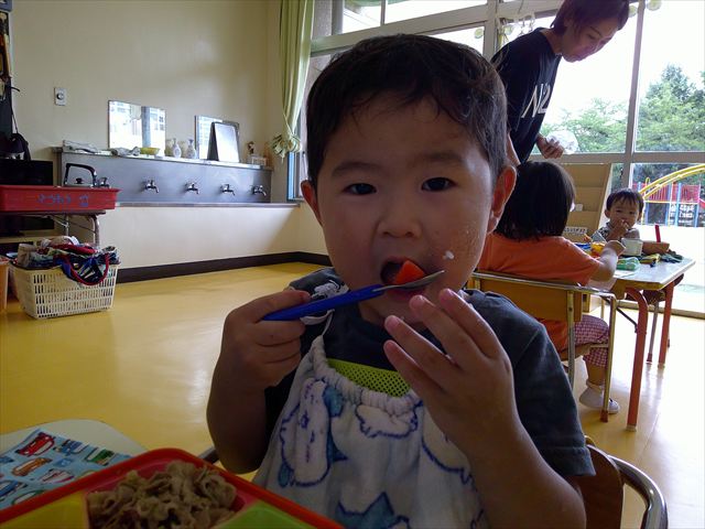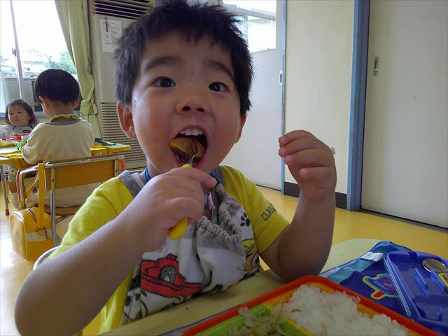 明日は青空自然体験学習で川遊びに行く予定です。手作り弁当で遠足に出かける準備をしてきてください。またプールバックは園でお預かりしていますので、川遊び用の靴(かかとが止められるもの)を袋に入れて持たせてください。よろしくお願いいたします。
