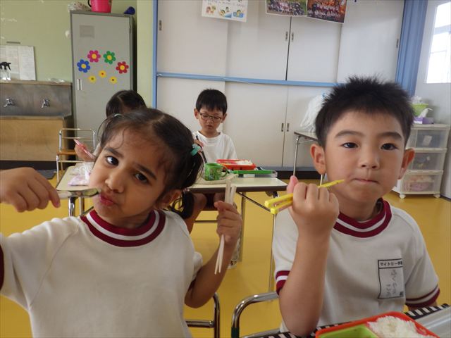 英語教室では幸せなら手をたたこうの英語ソングを練習しました。子どもたちも少しずつ覚えてきて、自信を持って歌えるようになってきました!また初めて「right」「left」を教えてもらいました!ゲームをしながら楽しく学ぶことができました!そして今日が1学期最後の英語教室でした。2学期も頑張って取り組んでほしいと思います!