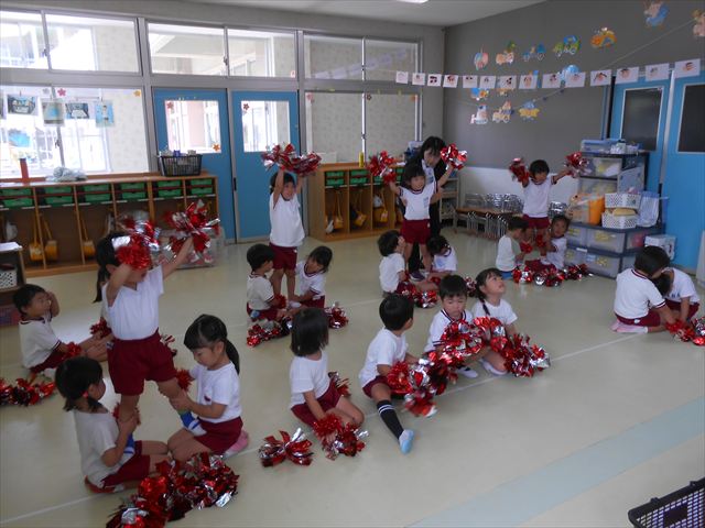 午前中に運動会練習をたくさんしたので午後は室内遊びをしました!頑張りぬいたあとの室内遊びだったのでとても喜んで遊べていました(^^)