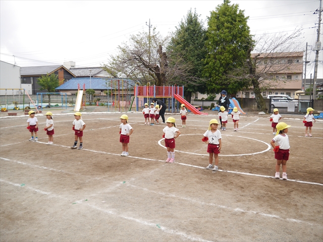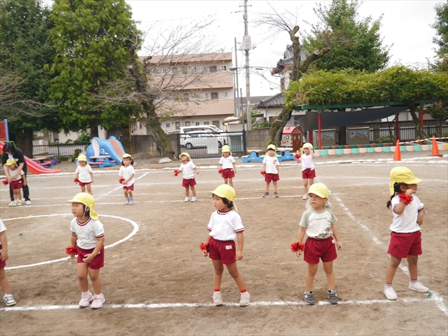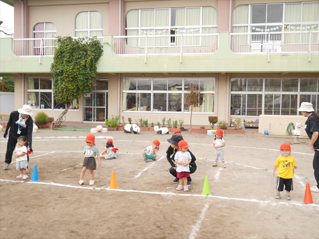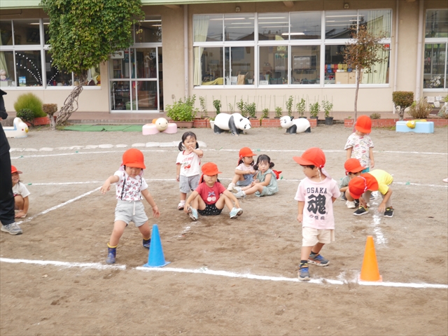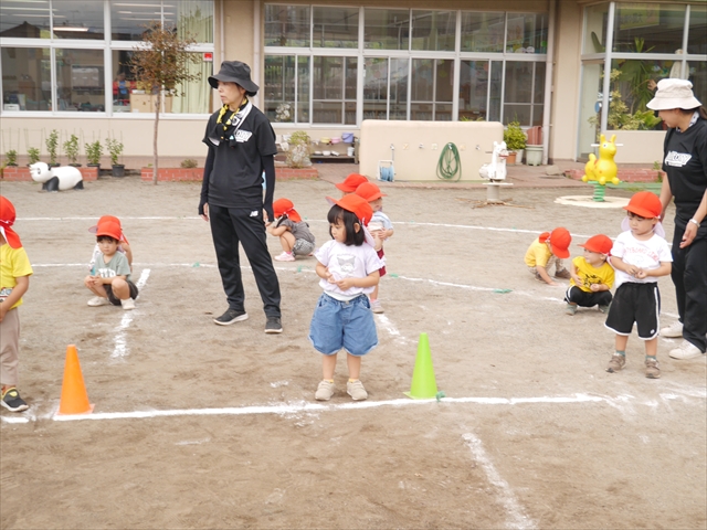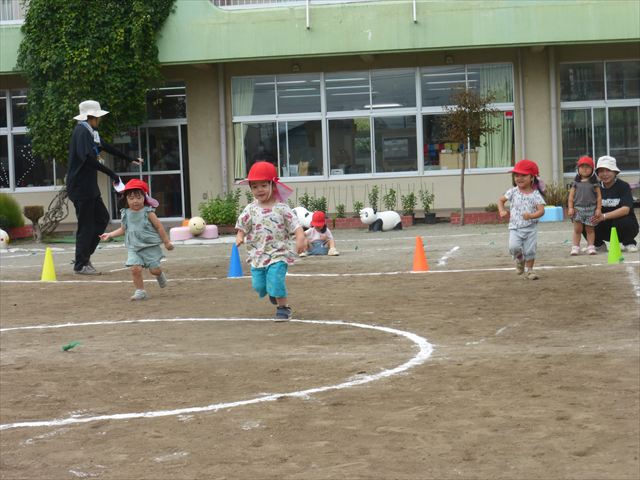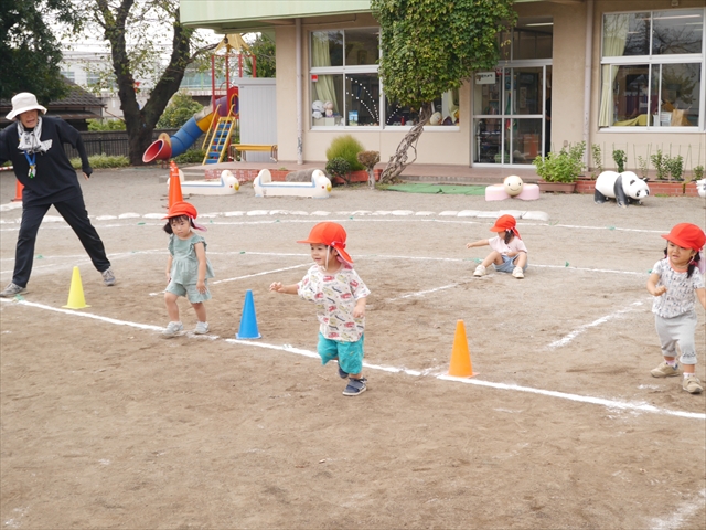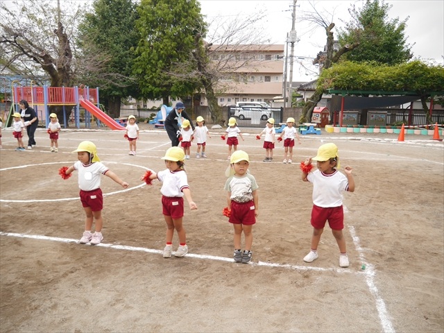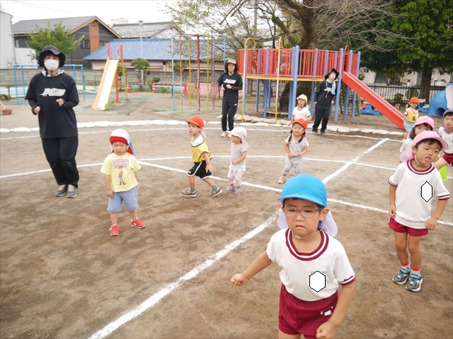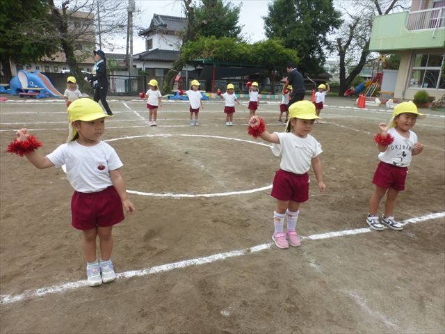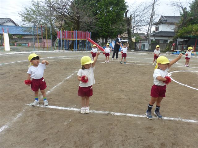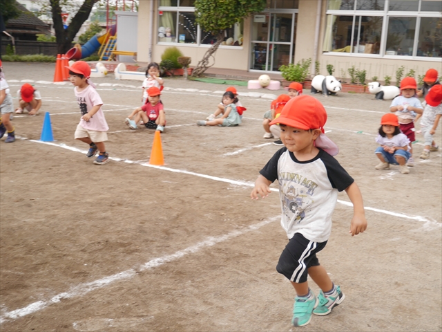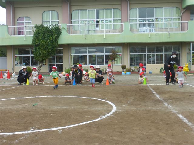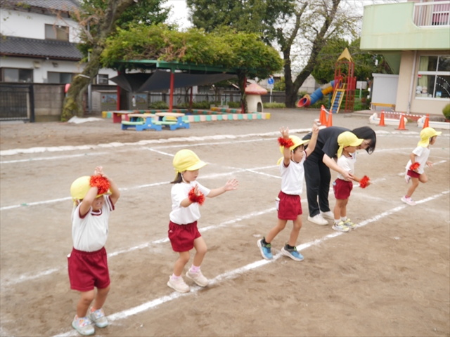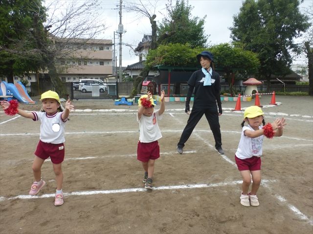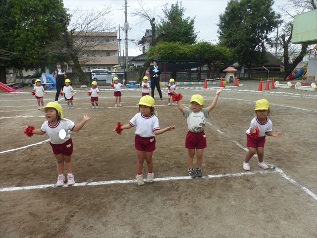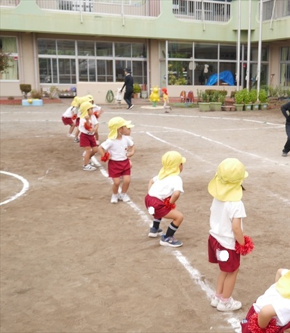 今日はたんぽぽさん初めての遠足!のはずでしたが、あいにくの天気で中止に…(T_T)幼稚園で運動会の練習を頑張りました。今日は過ごしやすい天気だったので、園庭でかけっこの練習をしました。掛け声と笛の合図もすっかり覚えて、一生懸命走るかっこいい姿が見られました!(^^)!おうちでも「位置について、よーい、どん!」と言ってみてください。それぞれの掛け声に合わせて、ポーズを見せてくれると思います♪