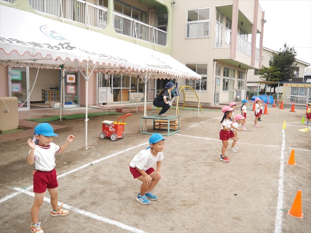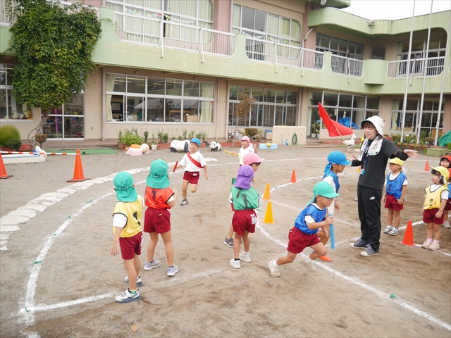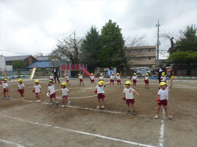 今日は、断念ながら青空自然体験に出かけることが出来ませんでした。その分、園庭で運動会の練習を頑張りました(