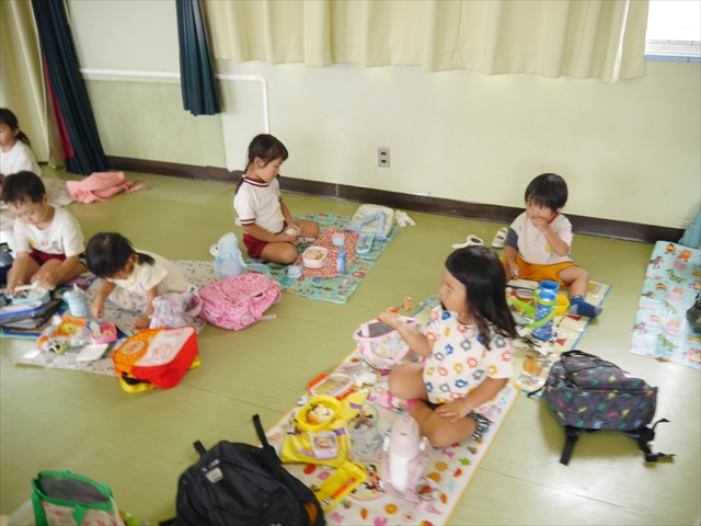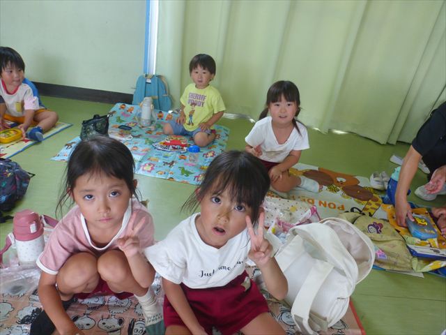年中組・たんぽぽ組の「青空自然体験学習」は、雨も上がりやれそうな雰囲気もあったのですが、現場の水沼公園が前日の大量に降った雨で足が埋まるような状況でしたので、実施は無理でした。何とか「とんぼ捕り」をやらせてあげたいと思います!(^_^;)