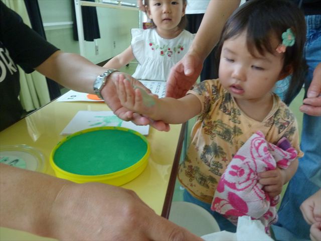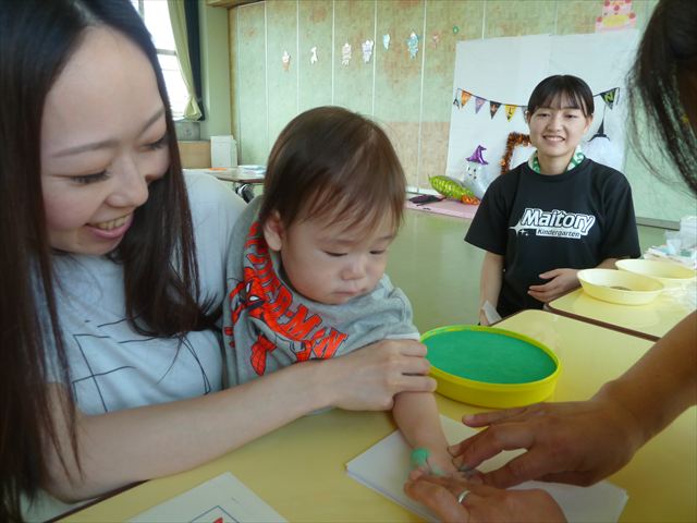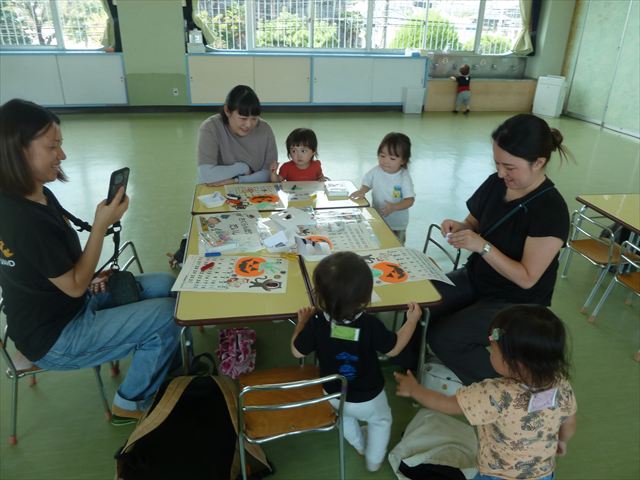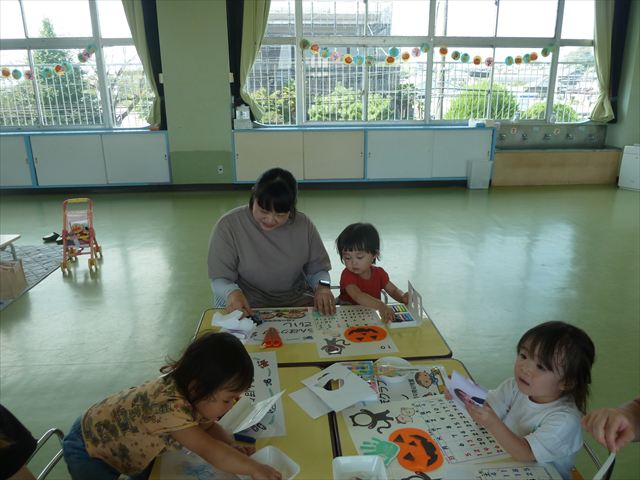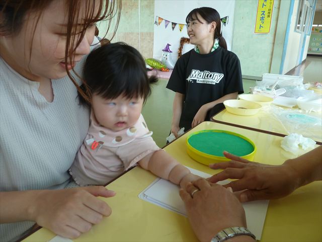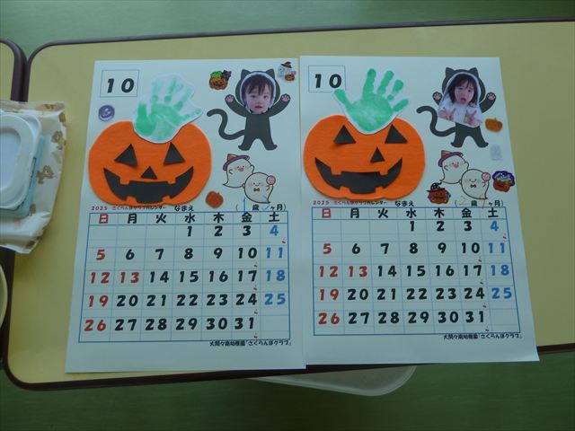 今日のさくらんぼクラブは「手形足形アートで記念カレンダーを作ろう!(10月)」でした!ご参加いただきましたみなさん、ありがとうございました♪ハロウィンバージョンのかわいいカレンダーが出来たでしょうか?(