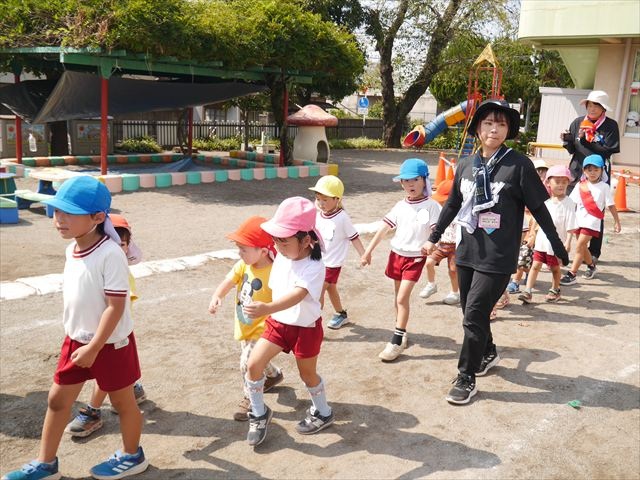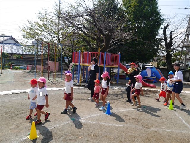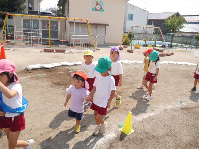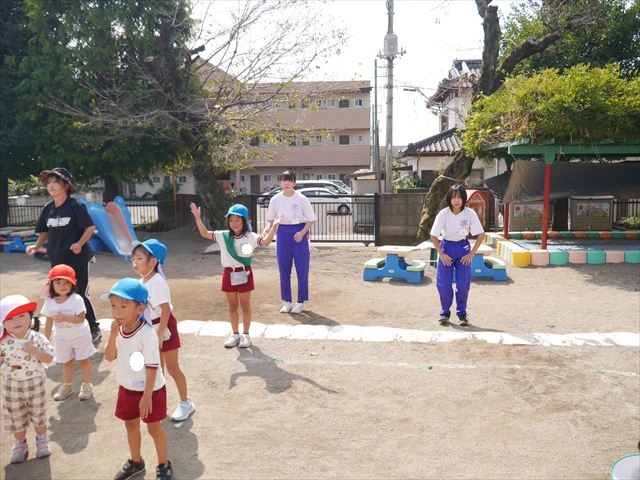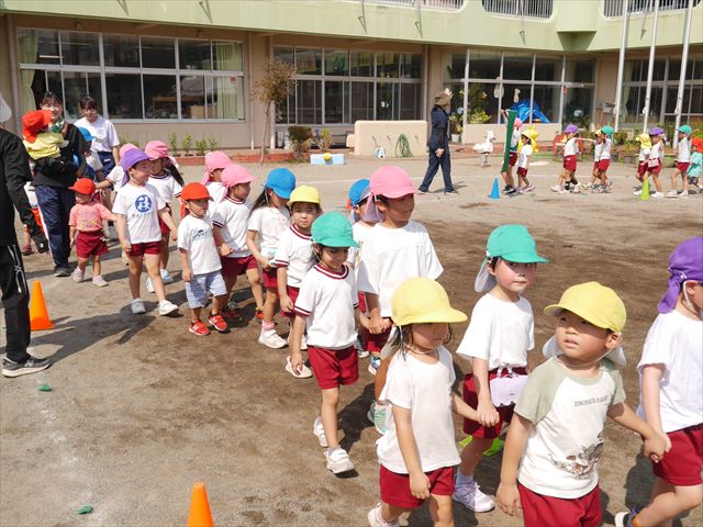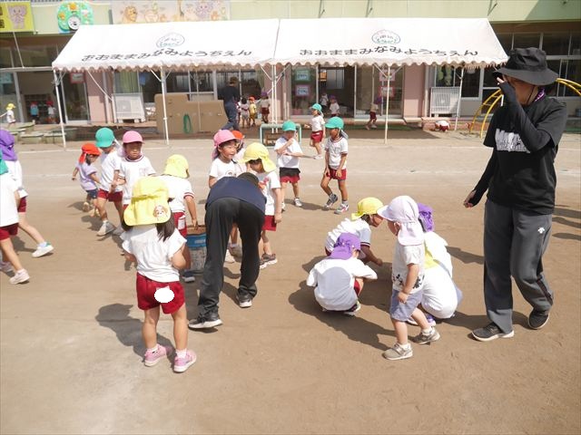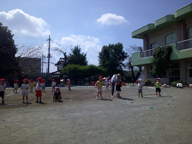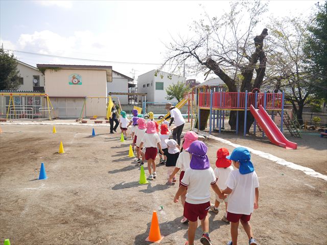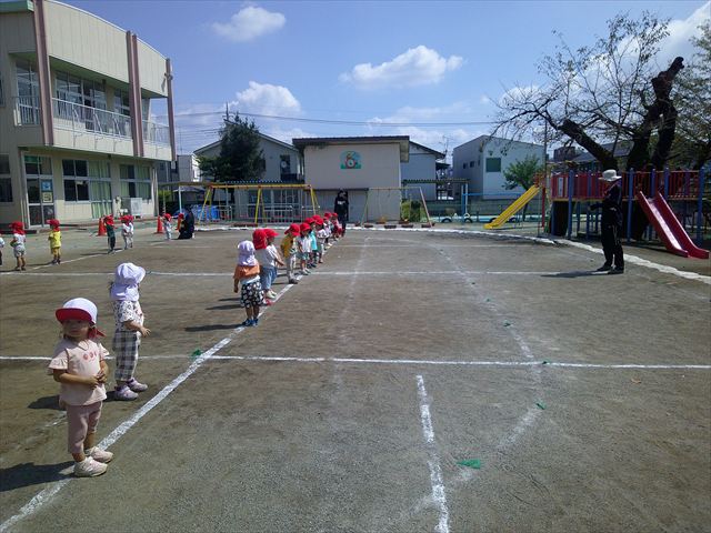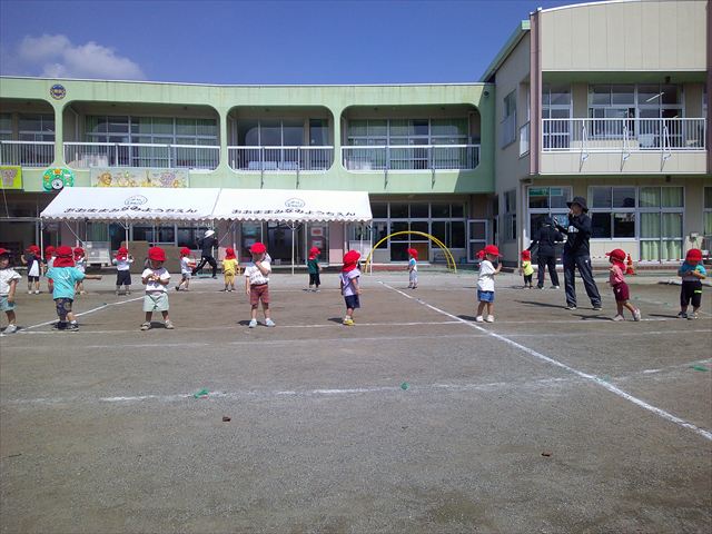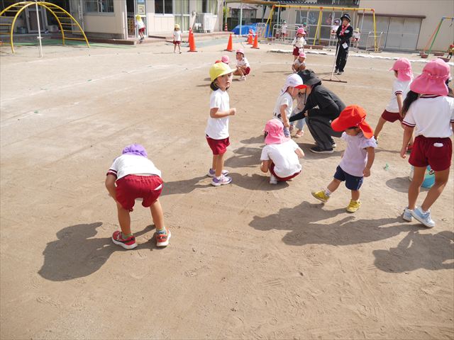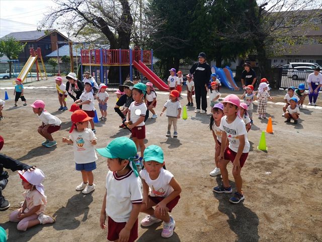 今日は初めて園庭で運動会の練習をしてみました!まずはかけっこの練習です。「位置について、よーい、ピッ!」の掛け声と笛の音に合わせて、ゴールに向かって一直線!お部屋での練習の成果もあり、お外でも上手に走っていました♪先生たちも夢中で、かけっこの写真を撮り忘れてしまいました…申し訳ありませんm(__)m その後は、遊戯のエビカニクスの練習もしました。お外だと緊張するのか、いつもより動きが控えめなたんぽぽさん(笑)たくさん練習を重ねて、お外でも元気いっぱいに動けるようにしていきたいと思います!