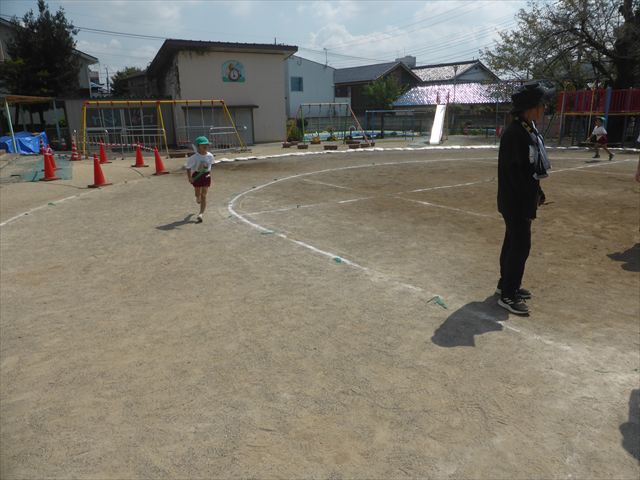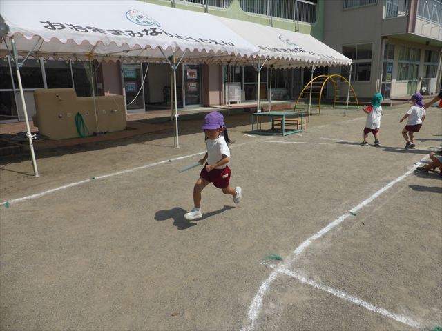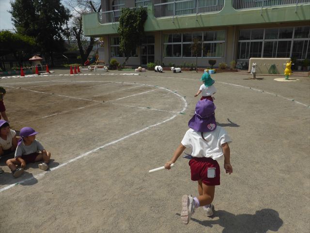 今日は入場行進と体操練習の後一度入室をして、休息を取った後リレーの練習をしました。バトンをもらっても走っていいのか戸惑ったり、トラックのアウトコースを走ってしまったりと、まだまだ可愛らしい姿の子どもたちです。これからさらに勝ちにこだわってお友だちを応援しながらリレーが楽しめるようにしていきたいともいます。
