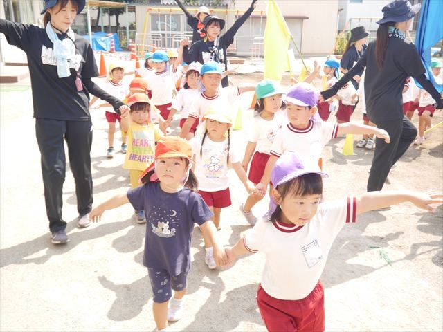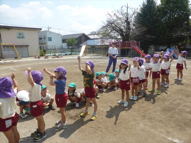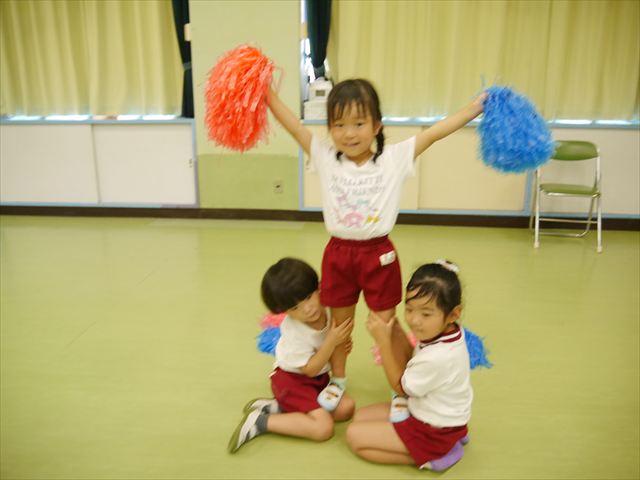 今日は運動教室で初めにリレーをしました。鈴木先生からリレーで速く走るコツやバトンの上手な渡し方を教えていただいてから走りました。白熱した試合になり、これからの練習が楽しみになりました☆そのあとは組体操をしました。前回は休み明けで忘れている部分も多かったのですが、鈴木先生をびっくりさせよう!とその後練習を頑張ってきました!その結果、裸足で痛い気持ちを我慢しながら、素早く動くことが出来て、鈴木先生をびっくりさせることが出来ました!本番まで引き続き頑張っていきます☆最後はみんなの要望で裸足で鬼ごっこを楽しみました(^^)/