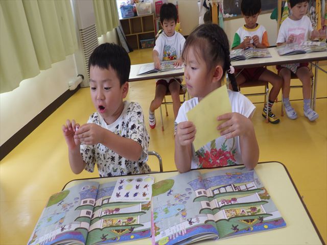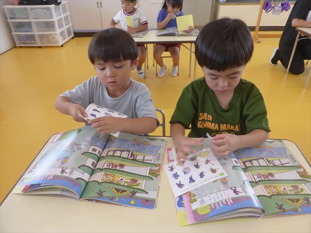 午後は月刊誌の9月号を読みました。忍者のお話や、運動会のお話など楽しみながら読み進めていくことが出来ました。