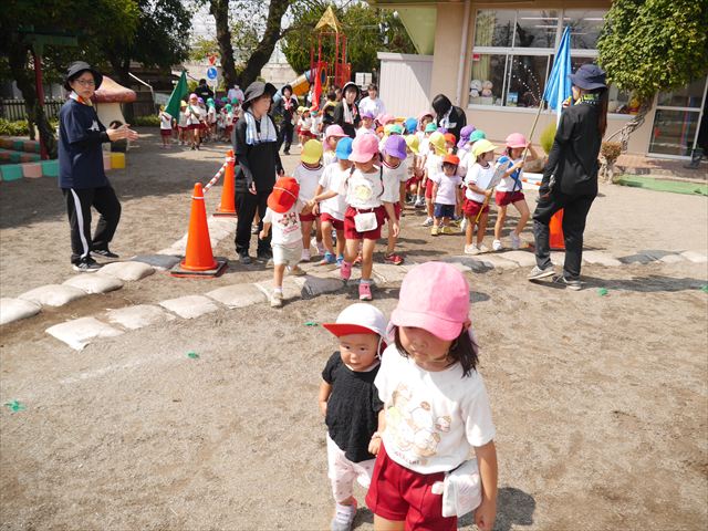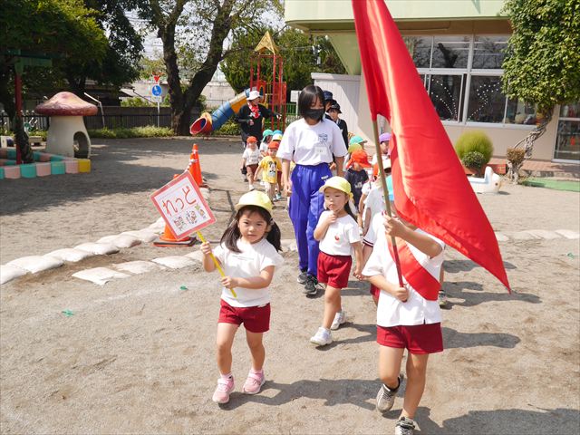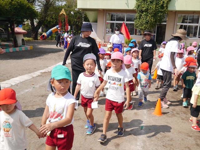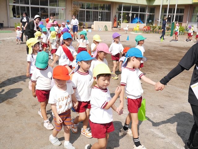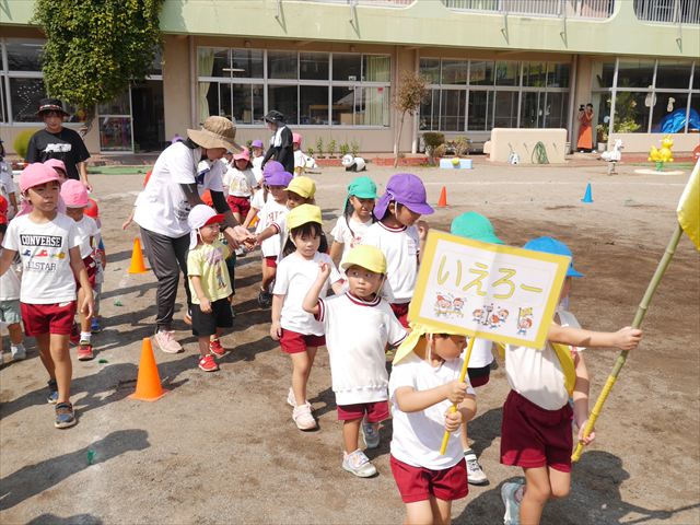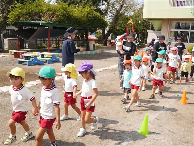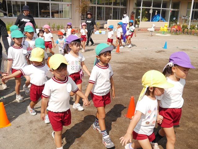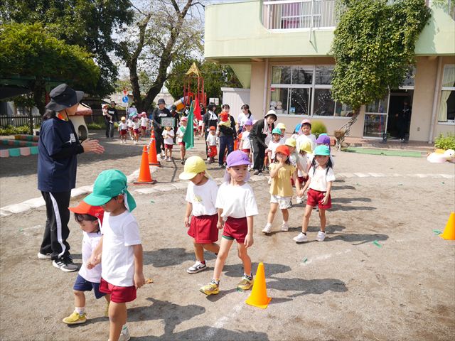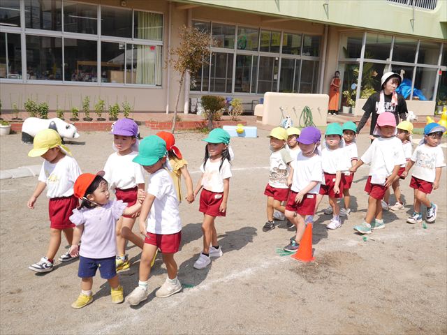 今日は、自由保育の時間として「カード遊び」をしました。いつも練習しているかけっこの位置からスタートし、笛の音と同時に先生がカードを出して、同じ絵柄のカードを持ってくるというゲームをしました。先生のカードをよーく見て走り出したかと思えば、思わず自分が食べたい食べもののカードを持ってくる子も(笑)ですが、何度も繰り返すうちにルールを覚え、みんなが先生と同じカードを持ってこれるようになりました☆このカードの絵柄は、運動会の親子競技でも出てくるので、たくさん遊んで親子競技でかっこいい姿を見せられるように頑張ります!