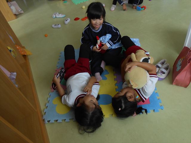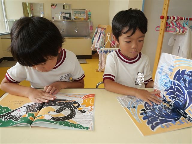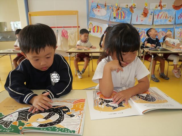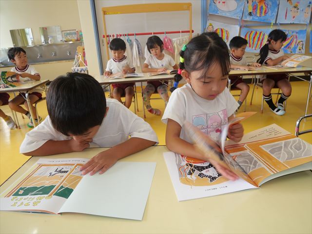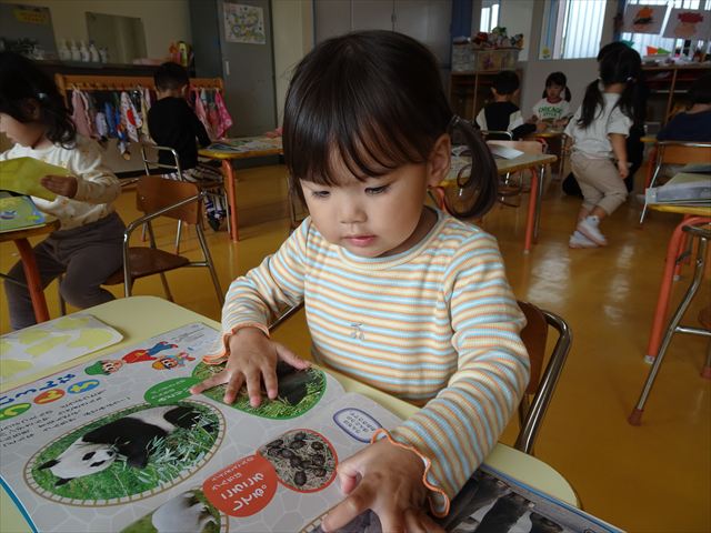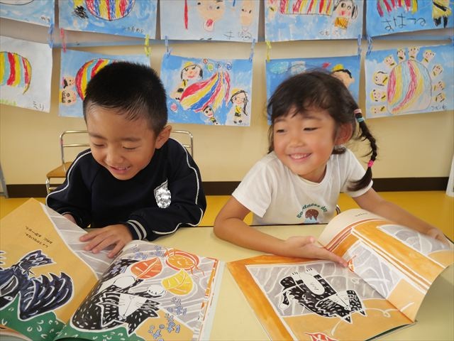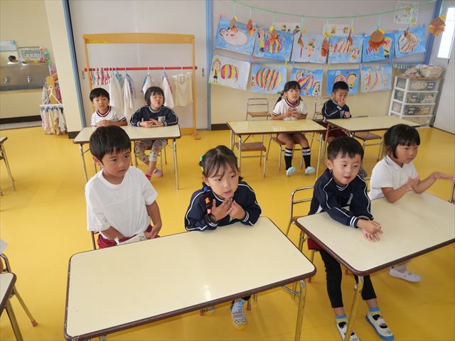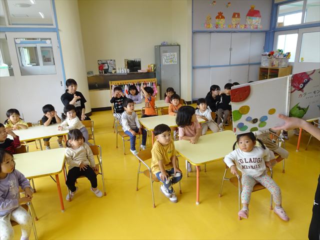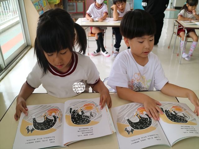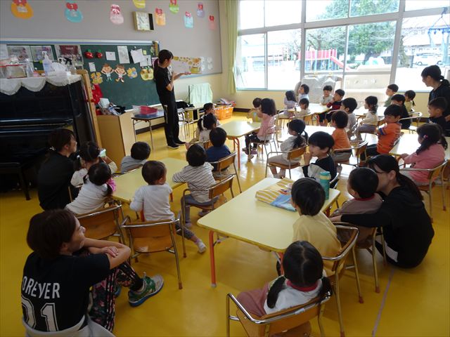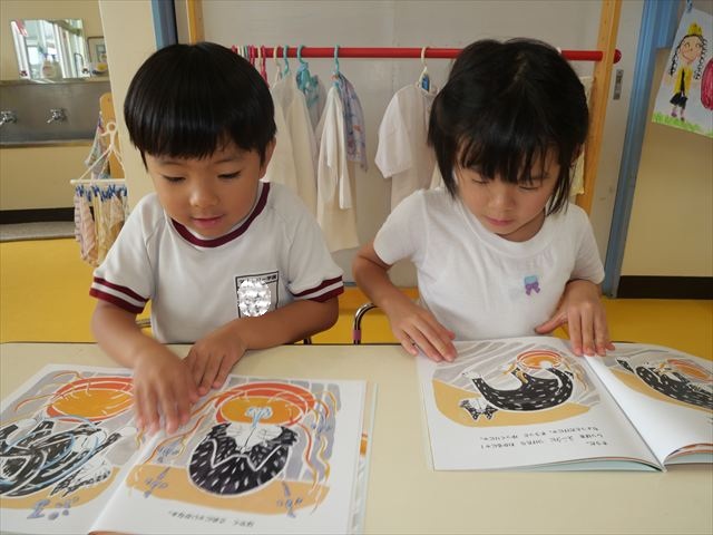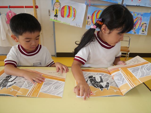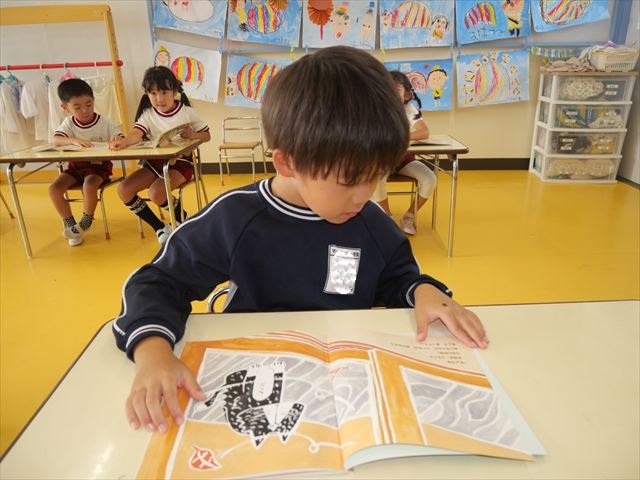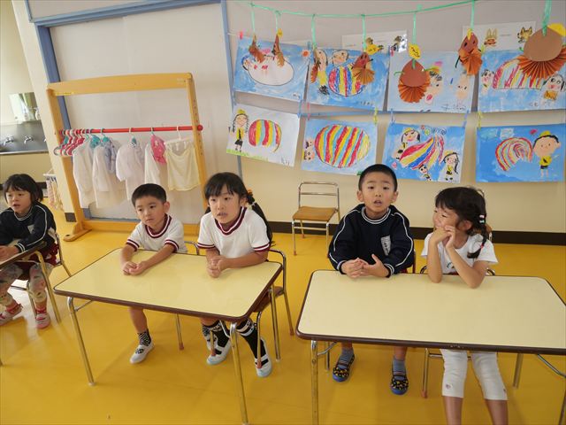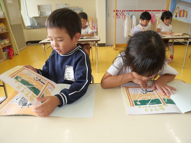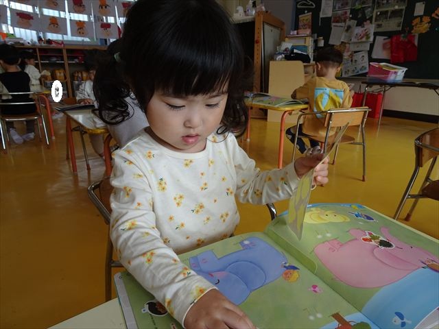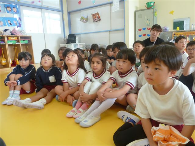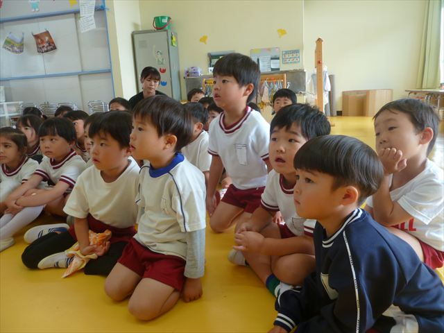 今日は、発表会に向けて絵本の読み聞かせをしました。年中さんは、オペレッタをします。絵本の登場人物になりきって、セリフを言ったり、ダンスをしたりしようと思います。子どもたちも、運動会の次は発表会た頑張るぞ!と言う気持ちのようですので、またみんなで楽しみながら練習をしていきたいと思います。