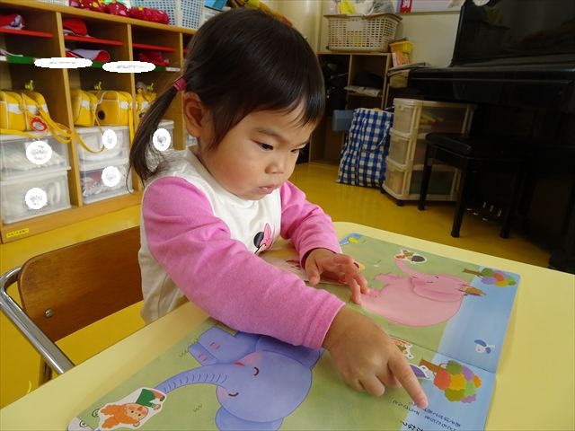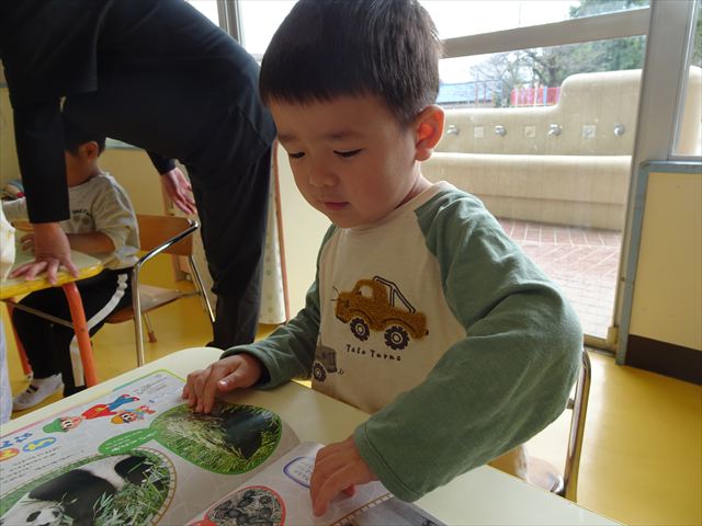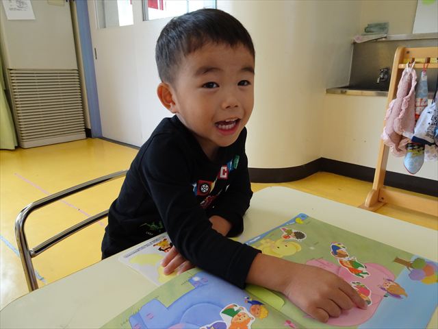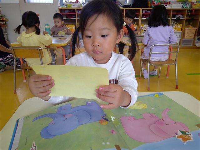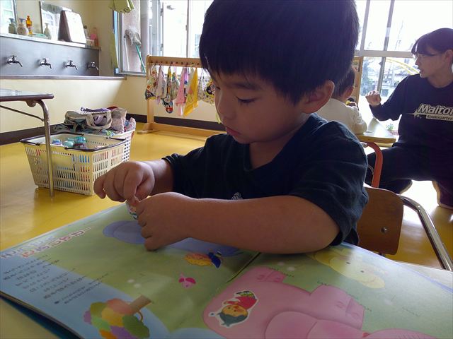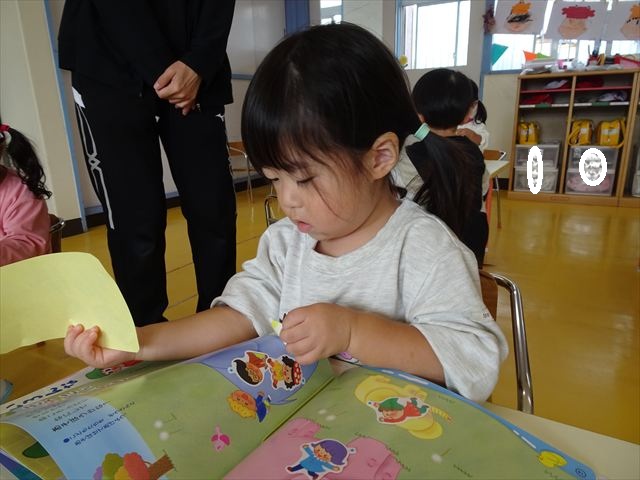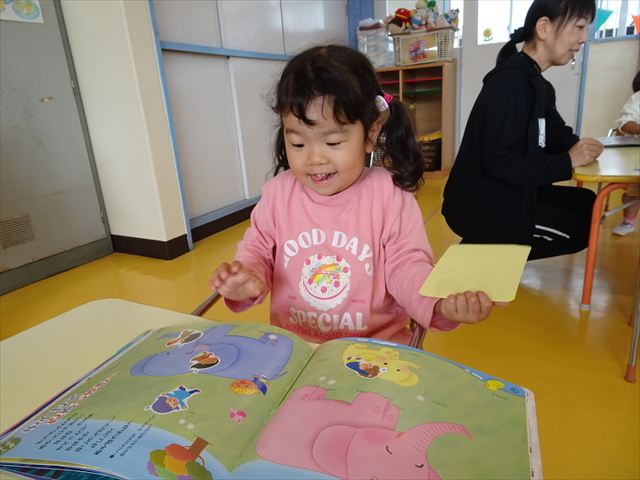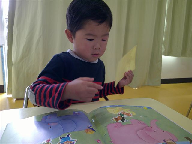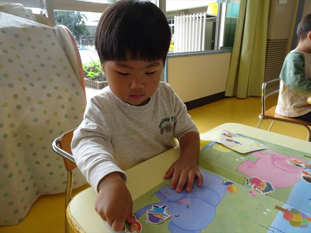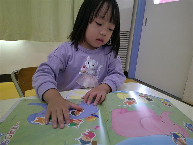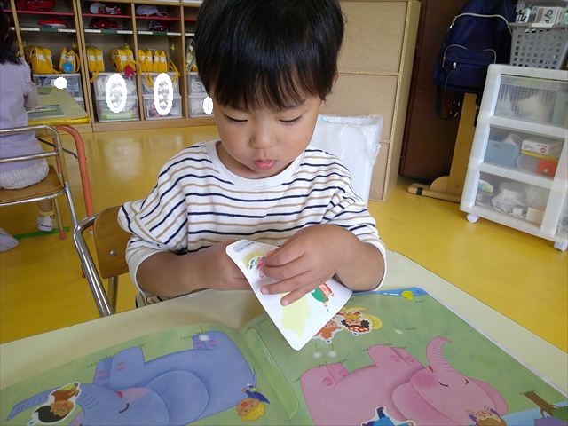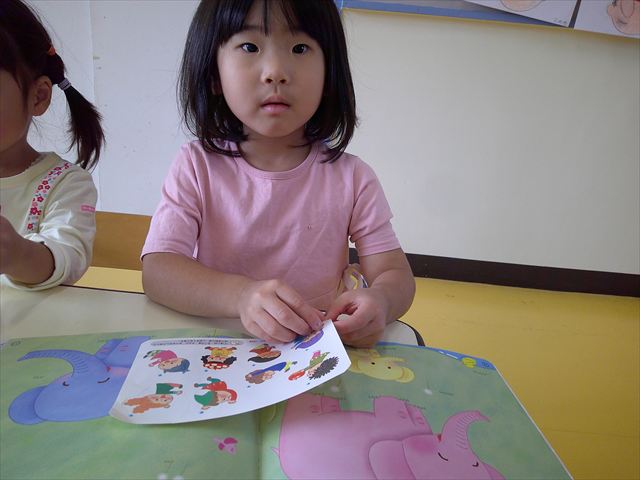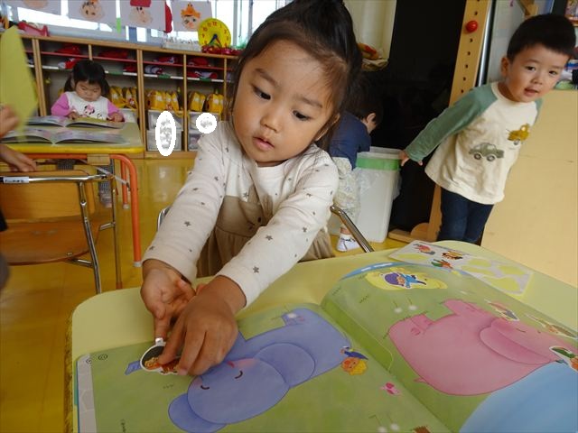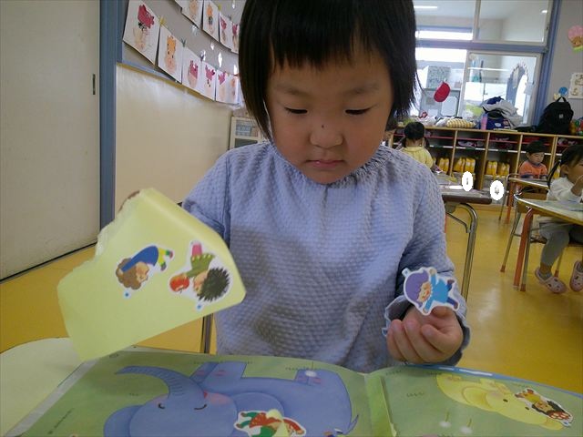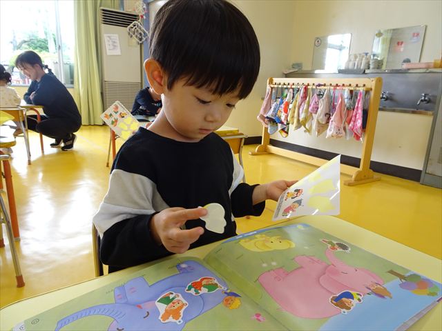 ^^)シールのページでは、ぞうさんの歌を歌いながらペタペタ貼っていました!