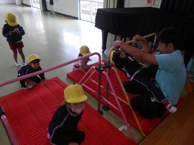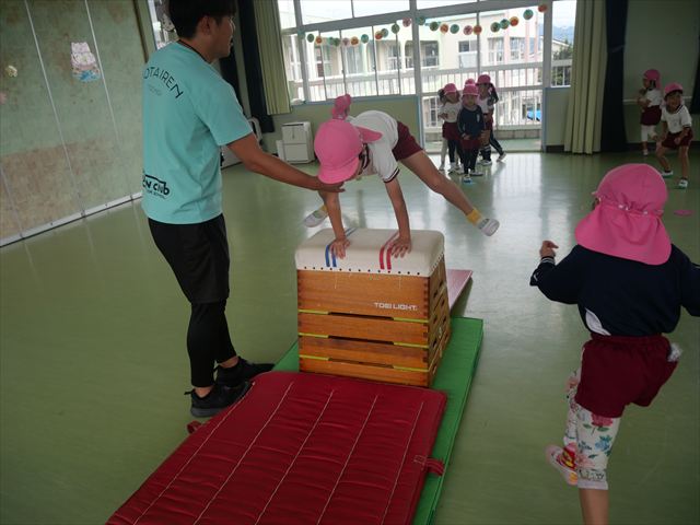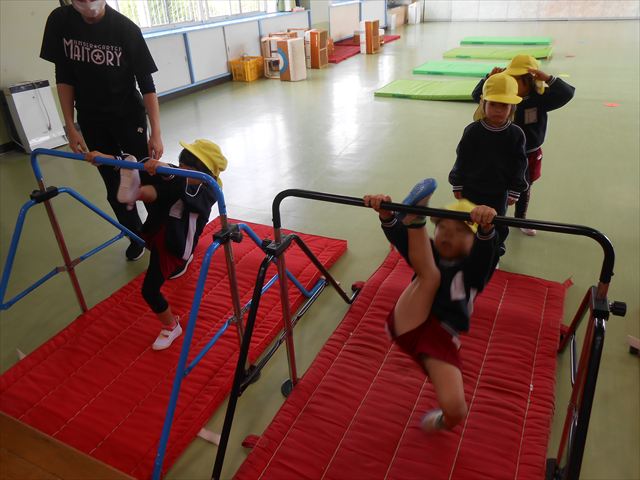 運動教室は跳び箱、鉄棒、なわとびをしました。運動会までなかなか練習ができなかったこともあり、忘れてしまっていた子もいましたが、練習すると感覚が戻ってきたようでした!最後は鬼ごっこも楽しみました☆