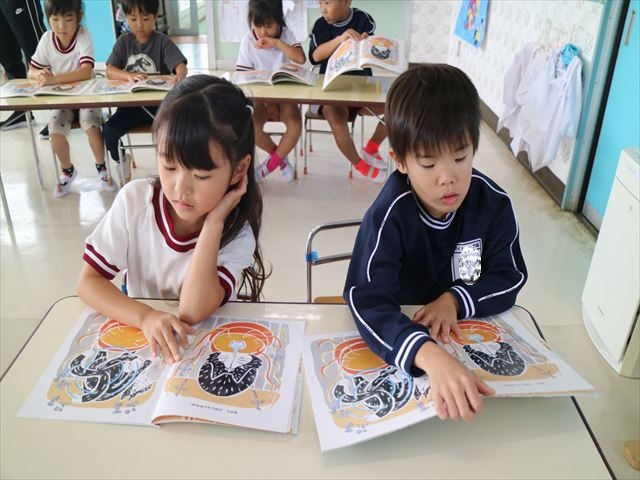 合間は国語の時間で月刊誌を読みました。猫は熱いものが苦手な猫舌の話で、みんな楽しんで読むことが出来ました!