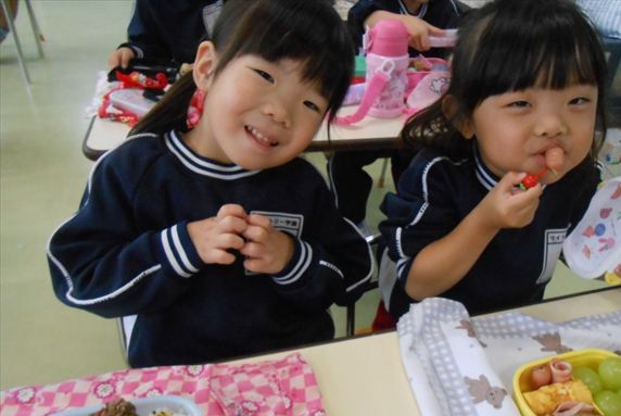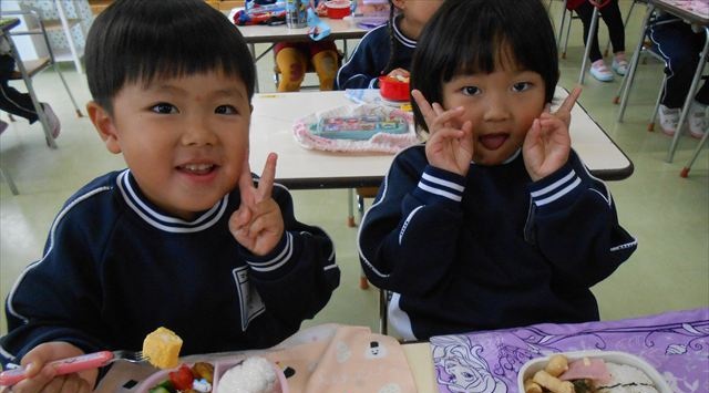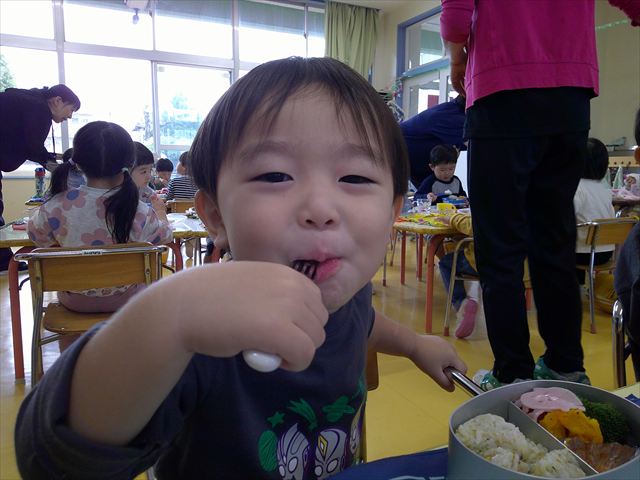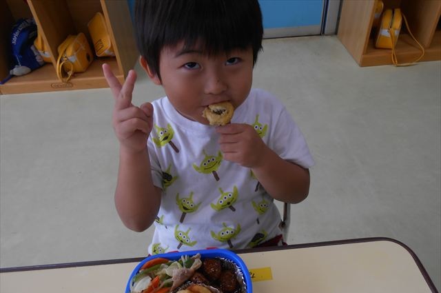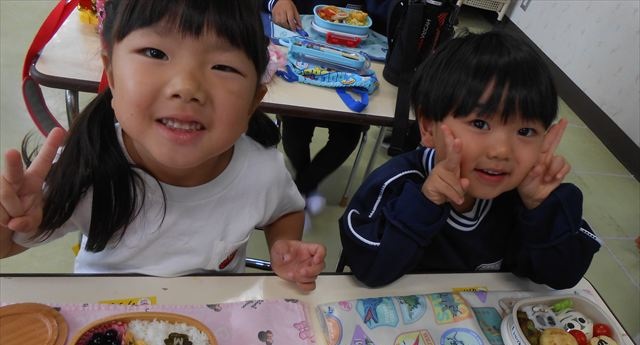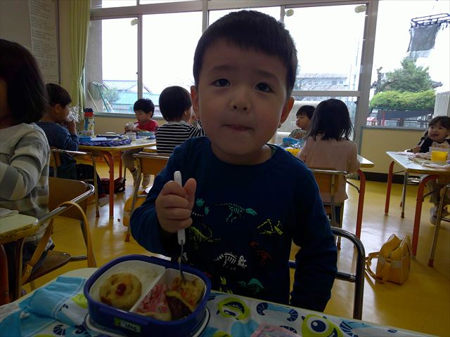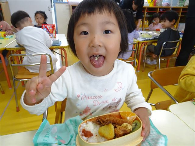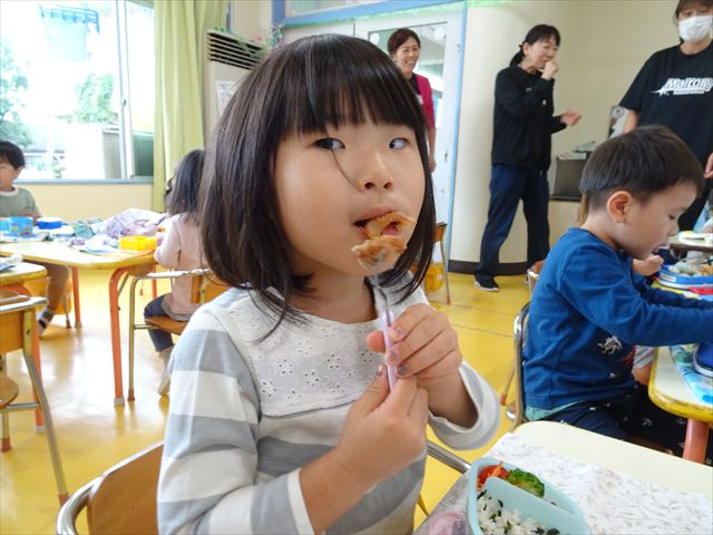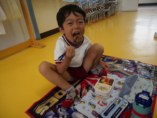 そして、お昼は美味しい手作り弁当☆せっかくなので、AB合同でみんなで食べました!普段は違うクラスのお友だちと食べられないので、お弁当を見せ合ったりしながら楽しく食べていました(