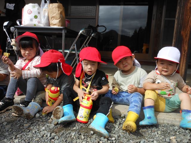 <明日のいもほり遠足について>明日はいもほり遠足に出かけます。今日と同じように、荷物は通常通りです。給食が出ますので、お弁当は不要です。また、本日長靴を持ってきた子は、明日に向けてそのままお預かりさせていただきました。明日持ち帰らせていただきますので、よろしくお願いいたします<(_ _)>