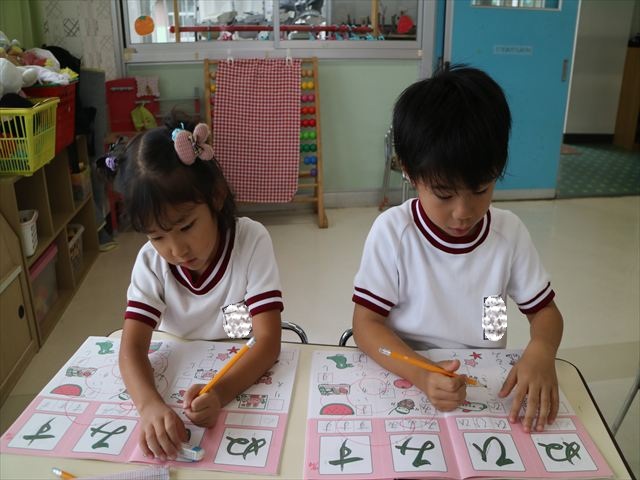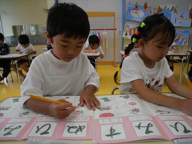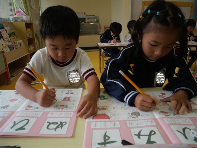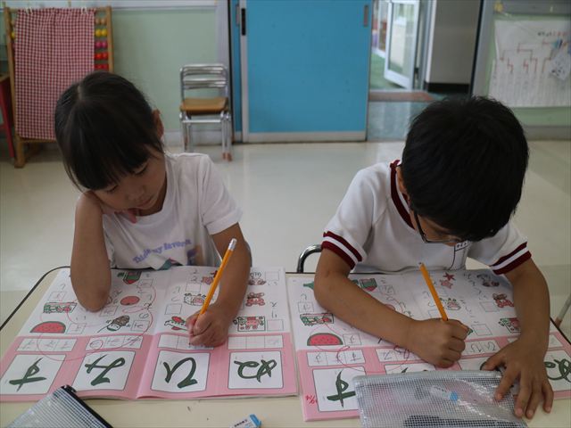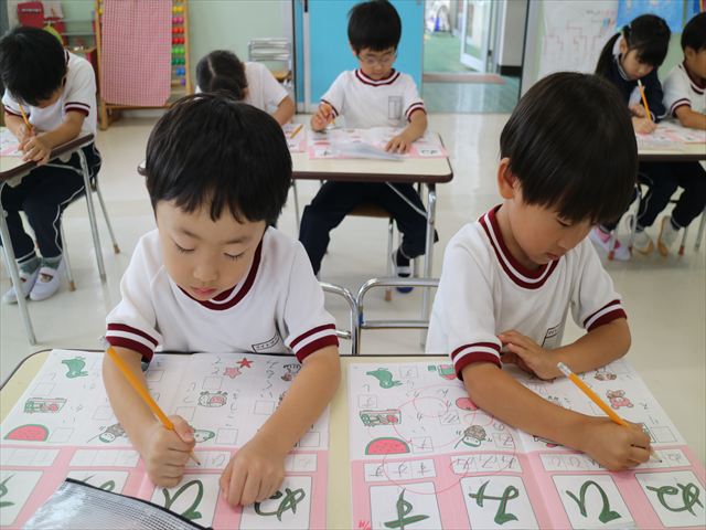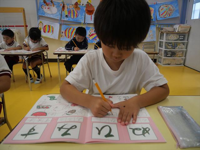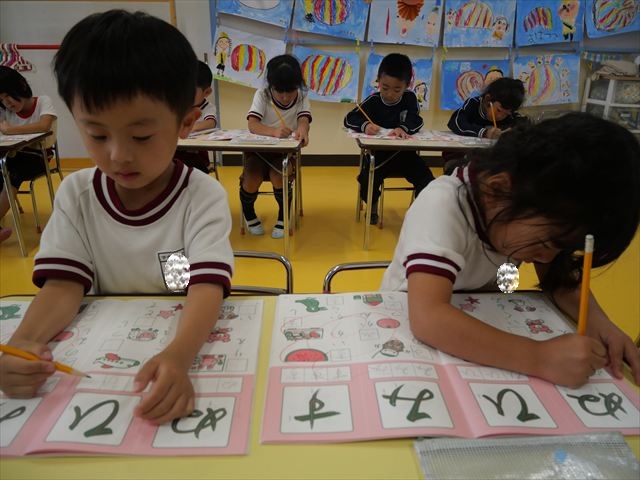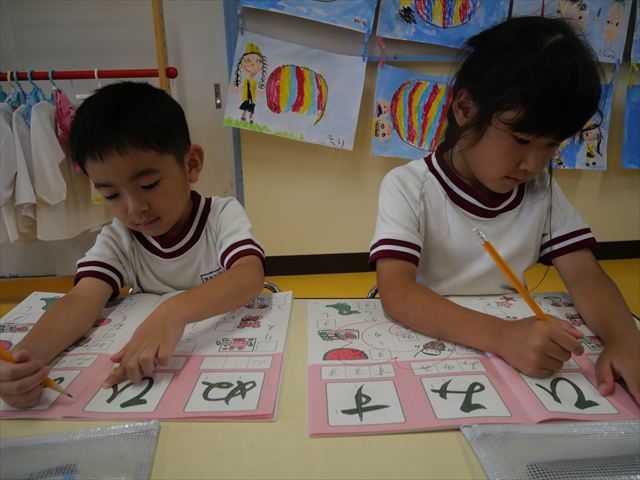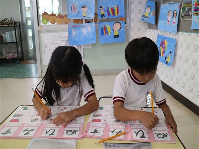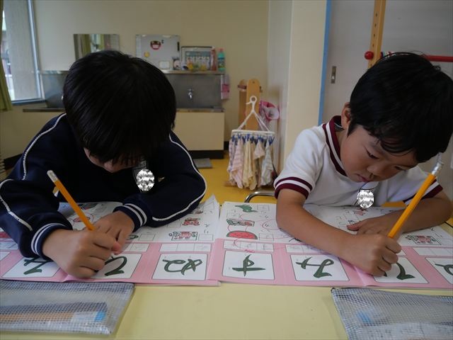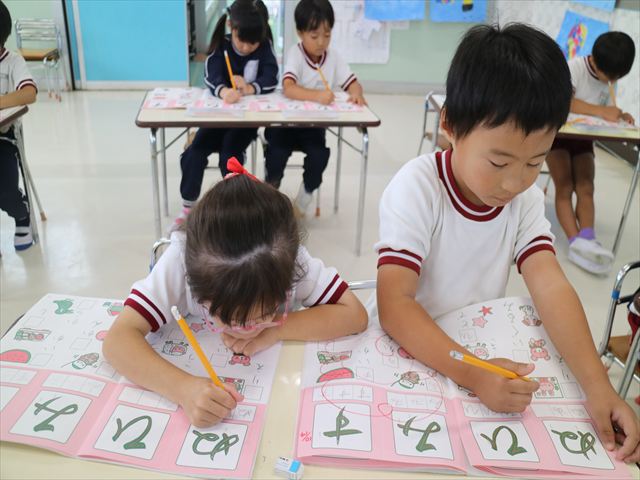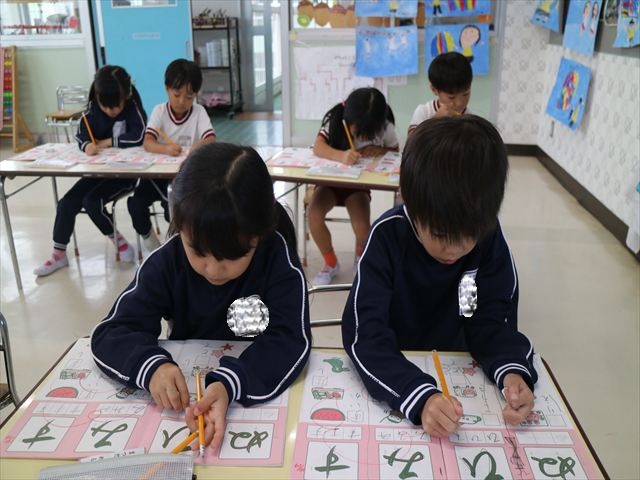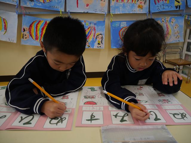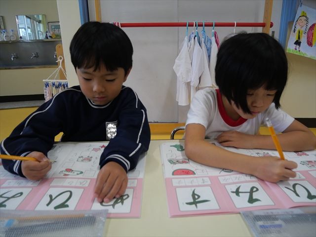 国語の時間でワークをやりました。今日やったひらがなは「ひ」と「ぬ」です。角をとがらせることや、角が出るように書くなどを意識しながら取り組めました!