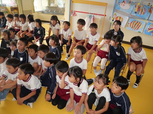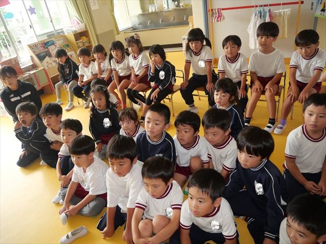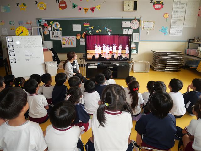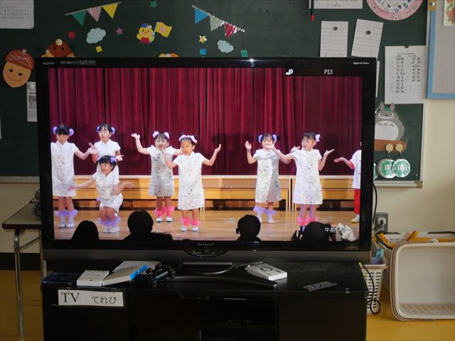 去年の発表会のDVD鑑賞をしました。年長さんがどんな風にダンスを踊って歌を歌っていたかを見て、刺激を貰った様子でした!鑑賞し終わったあとは、「なんの曲で踊るの?」「いつから練習始めるの?」とやる気満々な子どもたちでした(