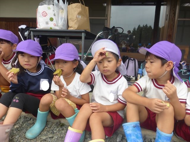 子どもたちが楽しみにしていた全学年「いも掘り遠足」ですが、今日は午前中から雨が降り続く悪天候のため「中止」とさせていただきます。明日の17日(金)に午前中全学年実施します。なお、「いも掘り遠足」は中止ですが、給食は出ませんので「手作り弁当」は忘れないようにして下さい。明日は、給食がありますので「手作り弁当」は必要ありません。午前中全学年が「いも掘り遠足」のあと幼稚園へ戻り給食を食べる予定です。