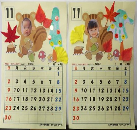 明日のさくらんぼクラブは「手形・足形アートで記念カレンダーを作ろう!11月」です。森のリスさん(お子様)が、秋の自然に囲まれた可愛らしいカレンダーを親子で楽しみながら作ってみませんか?みなさまのご参加お待ちしております🎶