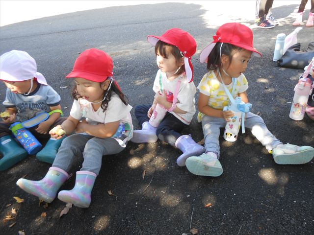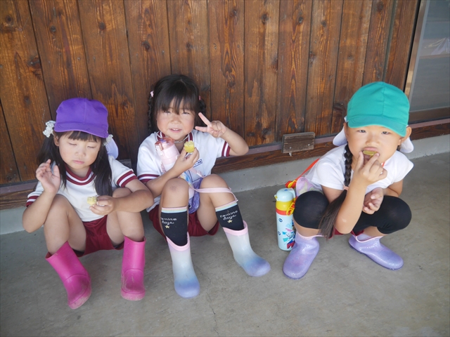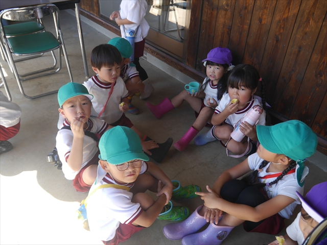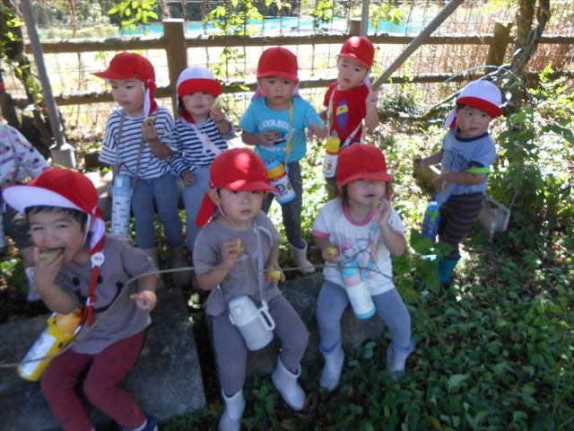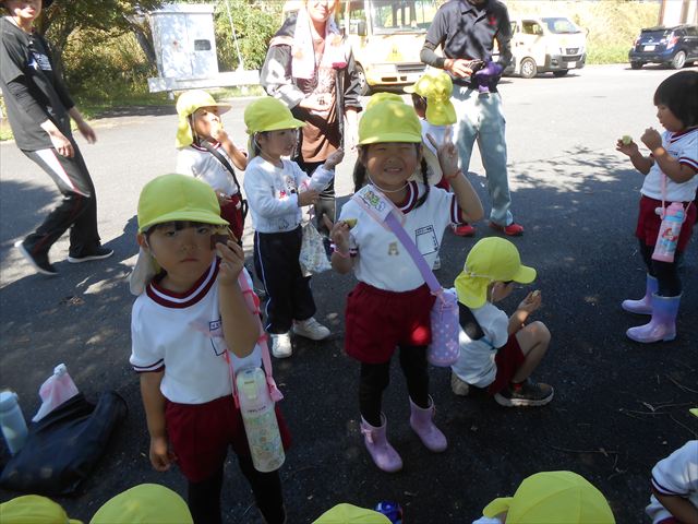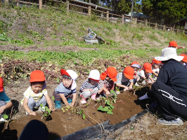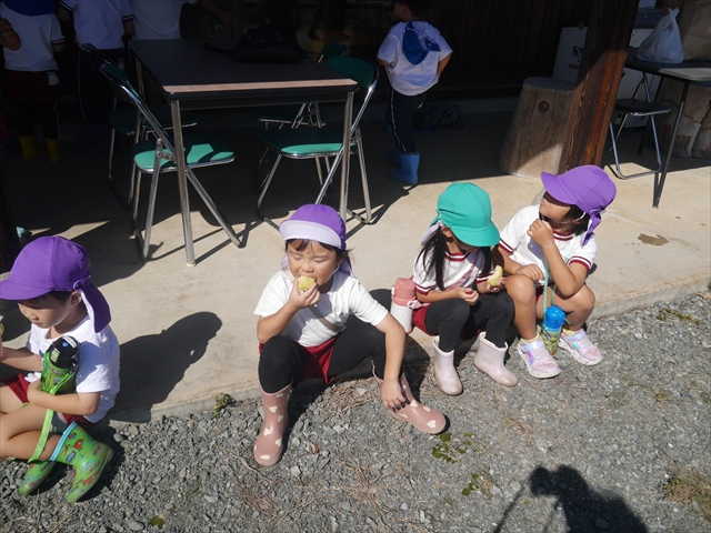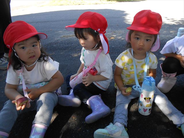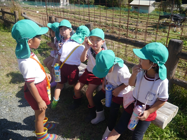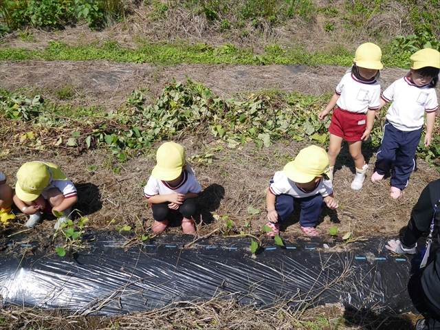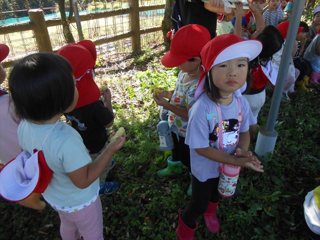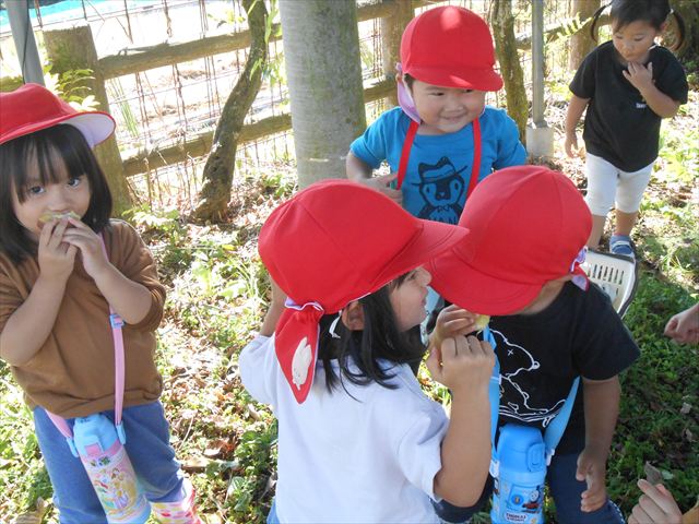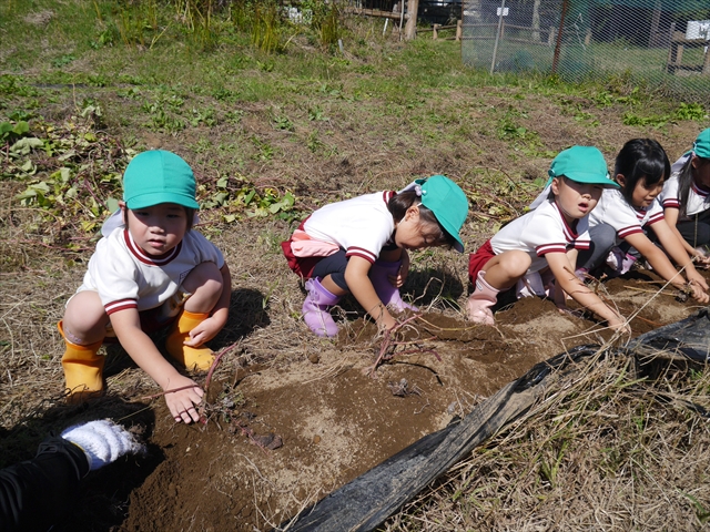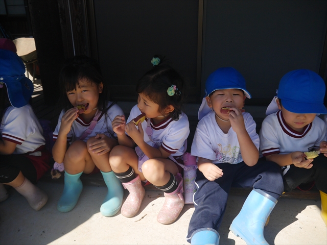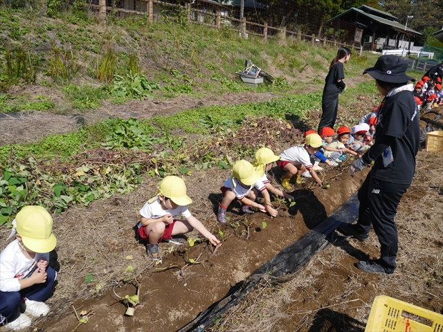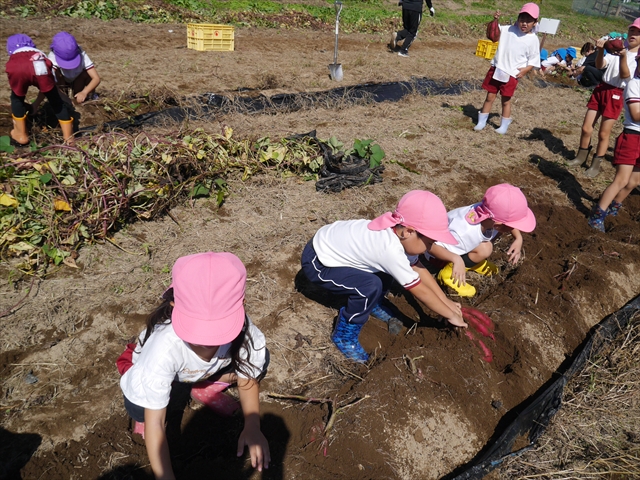 浅原体験村のさつまいも畑は、年少さんたちが5月に植え付けを行い、7月に雑草取りもしたので、成長がよく大きく育ちました。ただ、体験村の方の話だと今年は生育がいまひとつだそうです。しかし、芋の中には子どもたちの顔ぐらいの大きい芋もたくさんありました。とにかくおいしそうな大きい芋がたくさん収穫でて何よりでした。体験村からも購入した以上にたくさんサービスでおいもをいただきました!ヘ(^o^)/ 子どもたちみんな「芋掘り」の楽しい良い体験がいっぱいでき何よりでした。良かったね!(^_^)v 「芋掘り体験」が終わったあとは、体験村からのサービスで蒸かしたお芋をいただきました。みんな疲れてお腹も空いたので、より美味しかったようです!(^_^)b 収穫したさつまいもは来週から全学年で「焼きいも作り・食事会」を行い、おいしい焼きいもをいっぱい食べる予定です。また、年中さんたちは、おじいさん・おばあさんを招待して「さつまいも収穫祭・祖父母交流会」を実施する予定ですし、年長さんたちは「さつまいも料理教室」も行います!楽しみだね~!いっぱい食べてね。 ヘ(^o^)/ (^_^)v