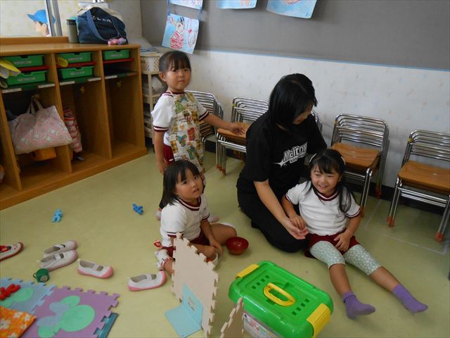 ^^)午後は、室内遊びをしました。お友だちと関わりを持って遊ぶ子、自分の好きな遊びを存分に楽しむ子それぞれ楽しく遊ぶことが出来たようでした(