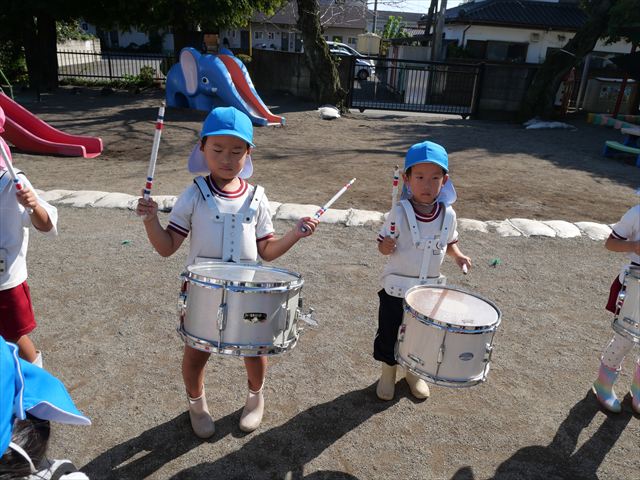 服装は鼓笛隊衣装(黒のタンクトップ・黒の靴下着用)となります。ベレー帽は当日現地で着用します。また必要な方は水筒・上着の用意していただき、保護者の方で管理をお願いいたします。詳しくは10/3に配信したメールを確認してください。当日はよろしくお願いいたします。