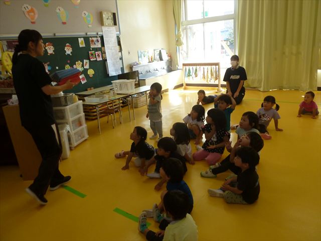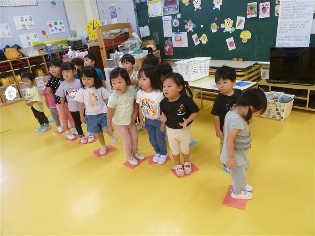 日曜日は、芸能発表会に年中組が出演します。先日メール配信させて頂いた通り、9時30分から9時40分までにながめ余興場の裏に集合して下さい。