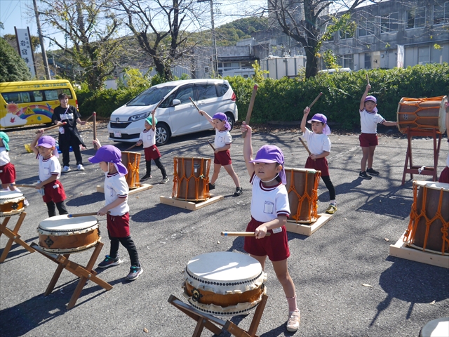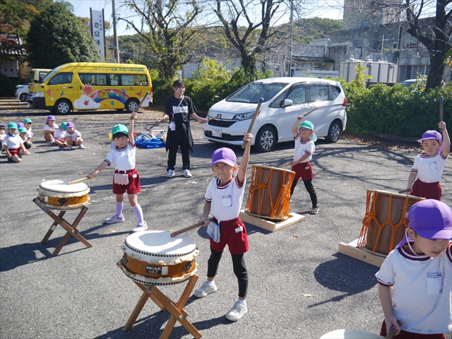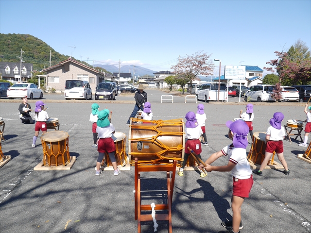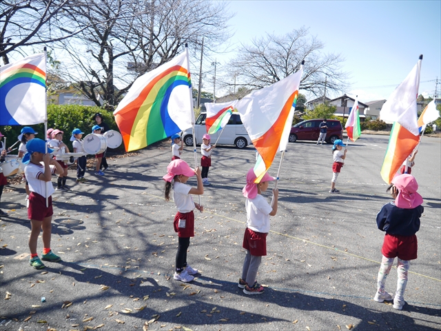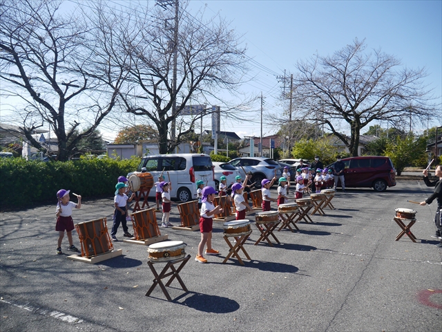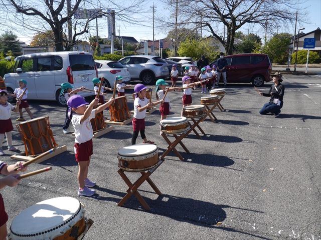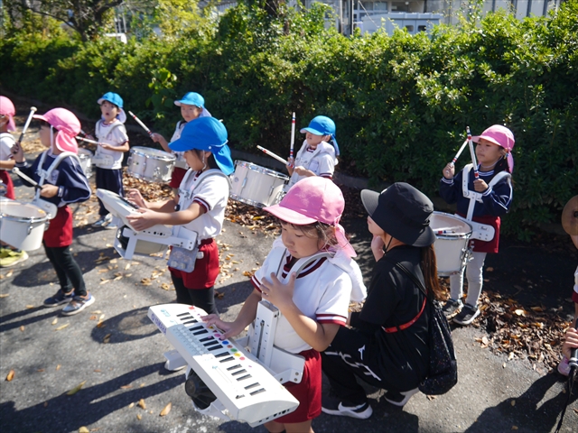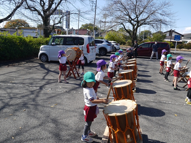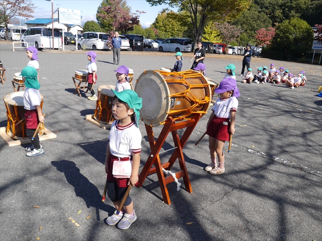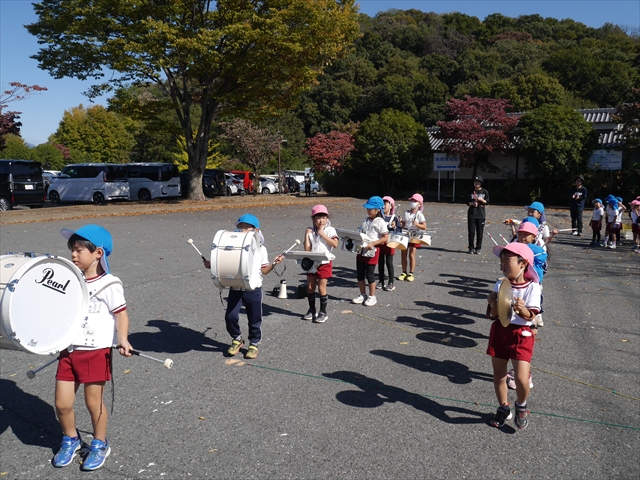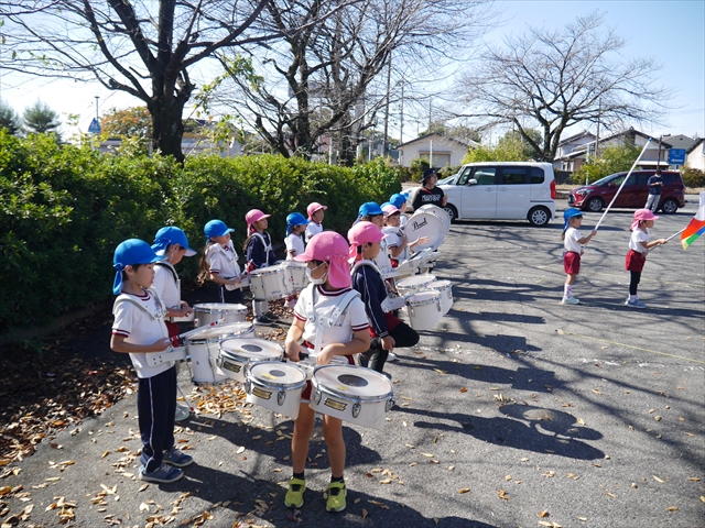 年中さんと年長さんは、今日は11月4日(火)、11日(火)に行われる「ひたちなか市との市民交流の日」イベントに出演するため、リハーサルを行いました。今年度は、会場が「岩宿博物館駐車場」になりました。前半は9時50分に年中さんがマイトリーを出発してリハーサルを行い、後半は年長さんがマイトリーを10時20分に出発してリハーサルを行いました。岩宿博物館の道路北側にある大型バス駐車場で北側を向いて演奏・演技を行う予定です。年中さんは「芸能発表会」、年長さんは「市秋季消防点検」に続いての演奏・演技でしたので、初めての場所でしたがとても上手にできました。えらい! 本番もこの調子で頑張ってほしいと思います!ヘ(^o^)/