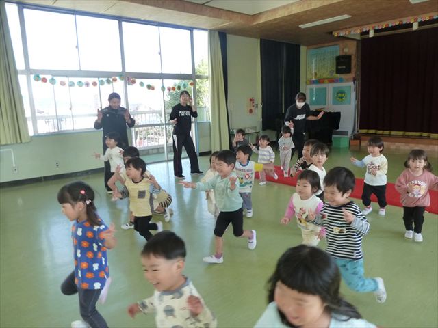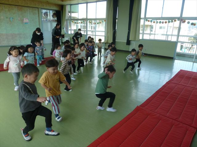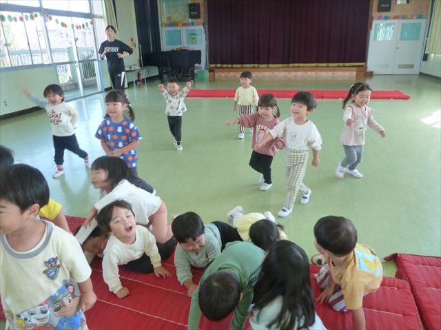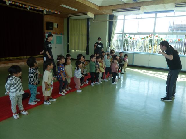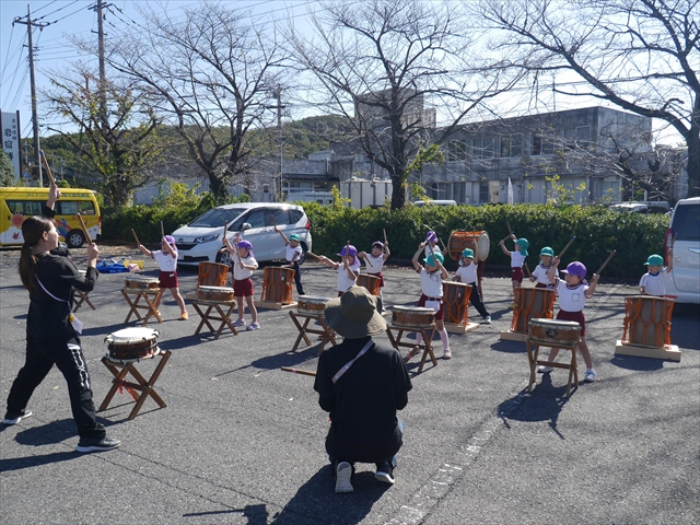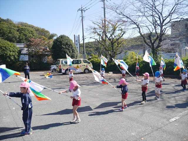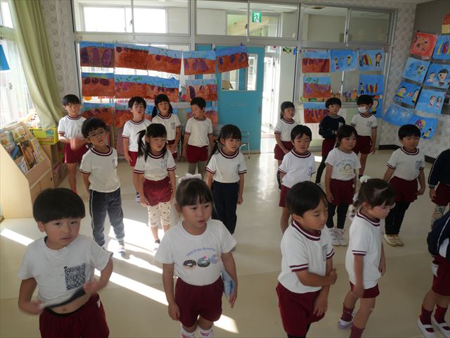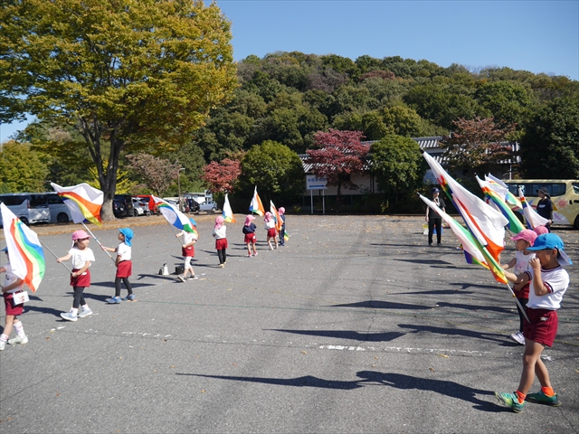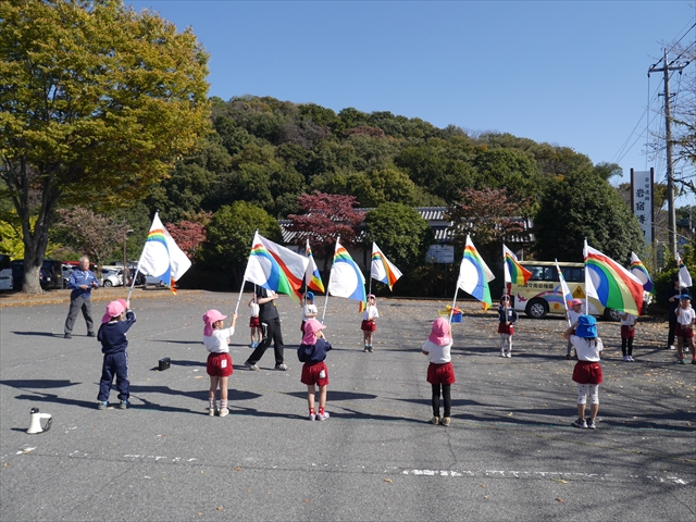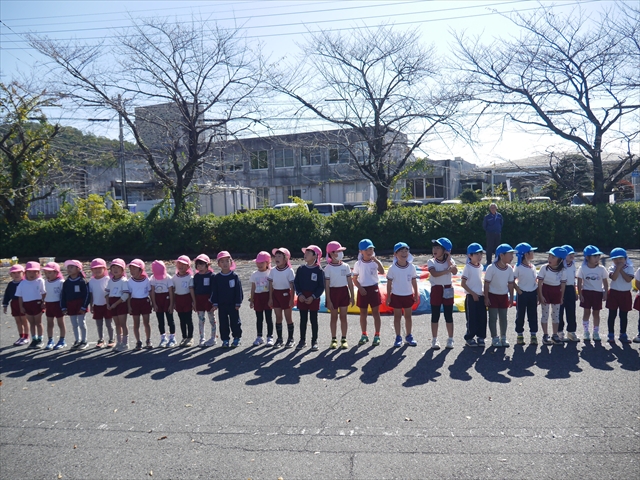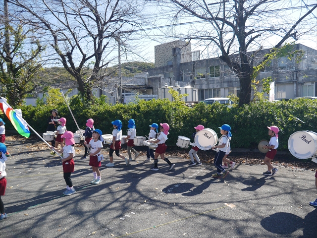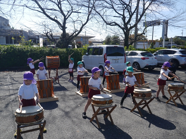 年中さんと年長さんは、今日は11月4日(火)、11日(火)に行われる「ひたちなか市との市民交流の日」イベントに出演するため、リハーサルを行いました。今年度は、会場が「岩宿博物館駐車場」になりました。前半は9時50分に年中さんがマイトリーを出発してリハーサルを行い、後半は年長さんがマイトリーを10時20分に出発してリハーサルを行いました。岩宿博物館の道路北側にある大型バス駐車場で北側を向いて演奏・演技を行う予定です。年中さんは「芸能発表会」、年長さんは「市秋季消防点検」に続いての演奏・演技でしたので、初めての場所でしたがとても上手にできました。えらい! 本番もこの調子で頑張ってほしいと思います!ヘ(^o^)/