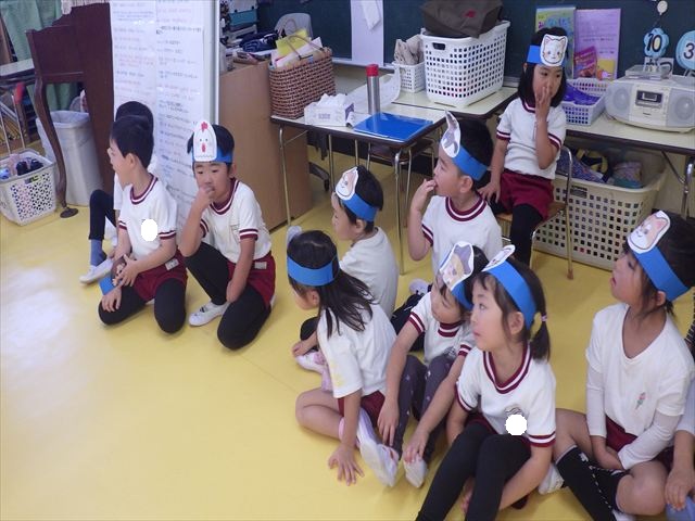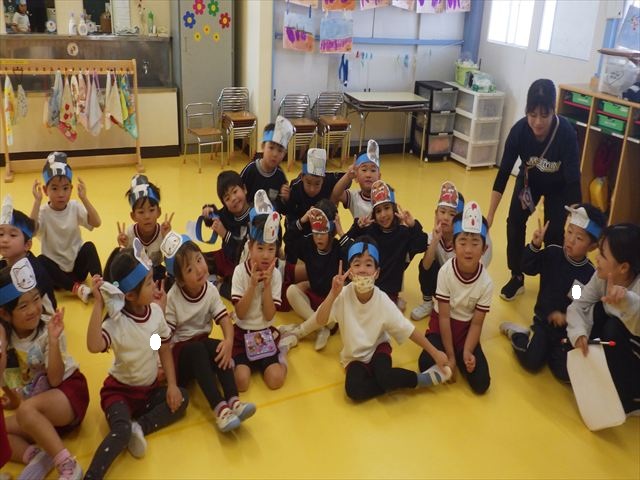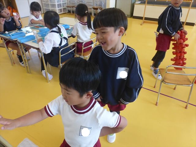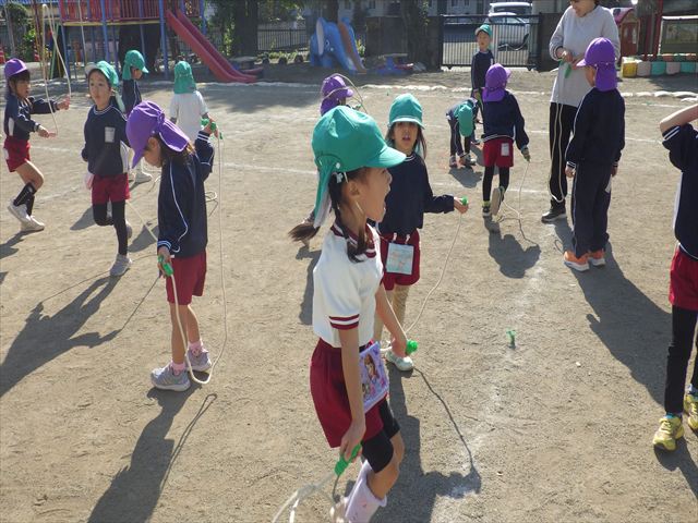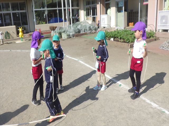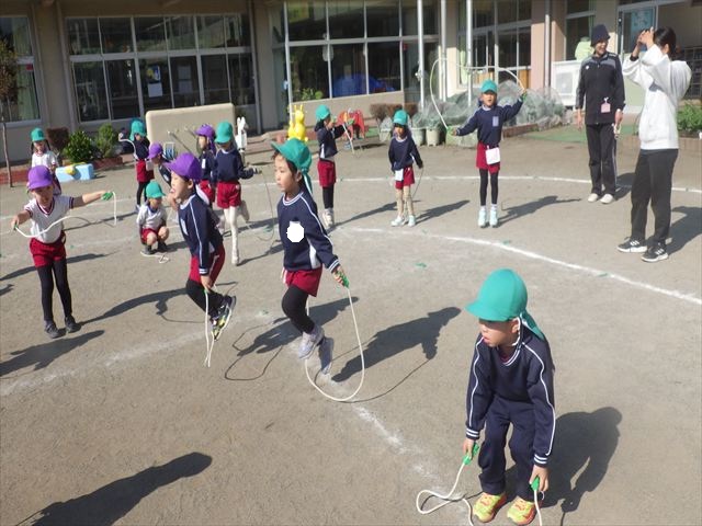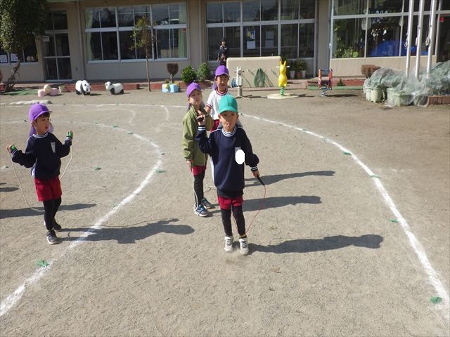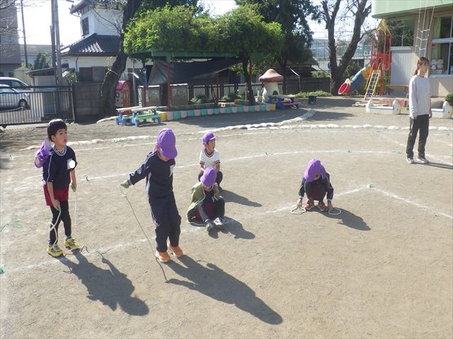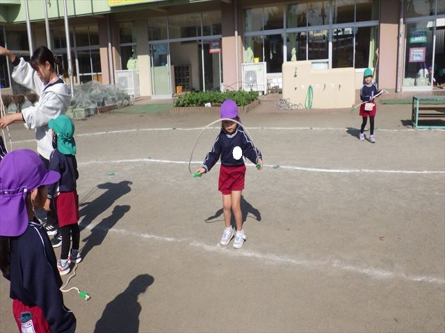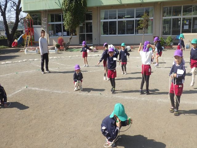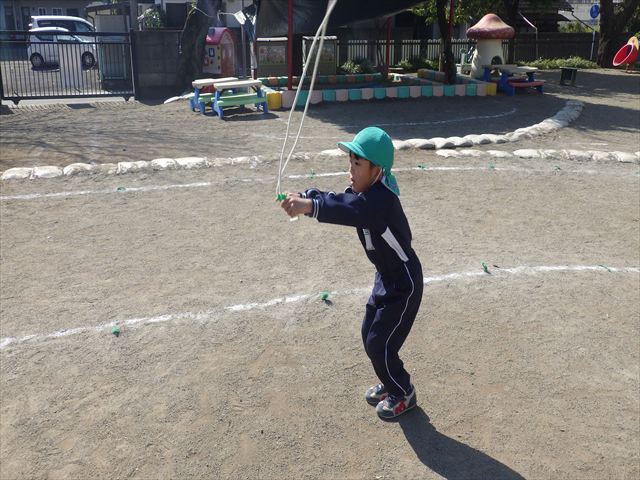 今日は、サーキットの後なわとびの練習をしました。少し練習をした後は、ルール説明をして、縄跳び大会のようにしました。少しずつ飛べるようになってきました♪たくさん飛べるように練習をがんばるぞ!
