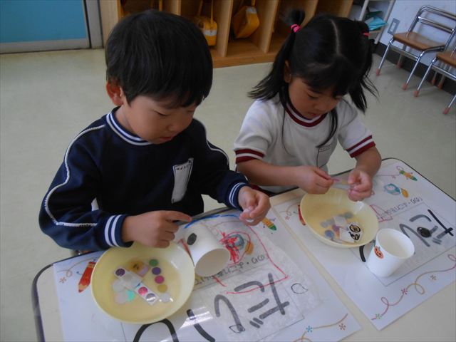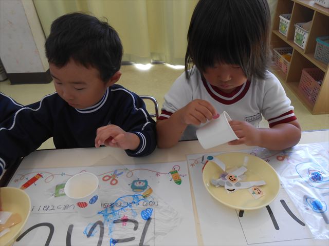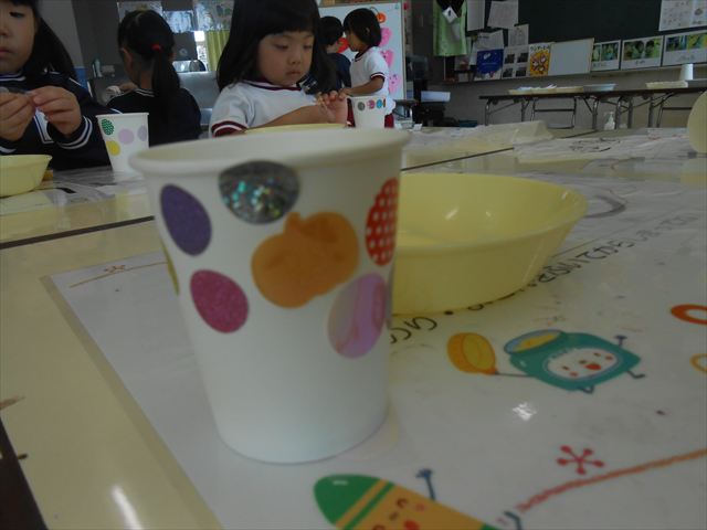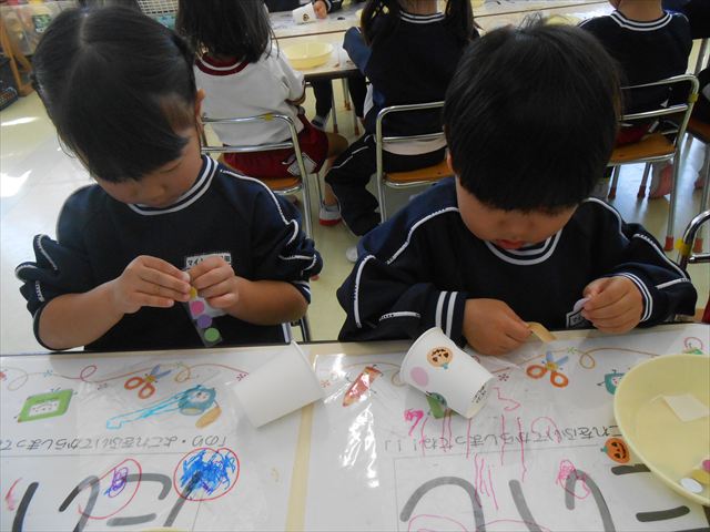 造形活動の時間「紙コップおばけ」&自由保育の時間「ハロウィン」☆年少☆