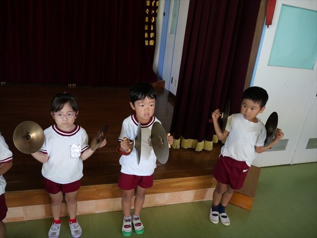 日本太鼓の練習が戸外でできなかったので、今日は室内で改めて細かいところまでお友だちと揃うように確認しながら練習していきました。大きな声を出し、足を開いて立ち、かっこよくなってきました!