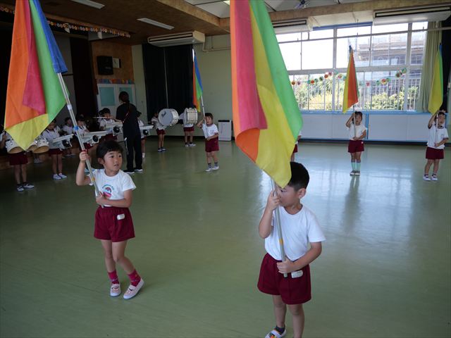鼓笛隊の練習をお遊戯室でやりました。本番を直前に楽器チームとガードチームでとても息のあった演技が出来て、お互いのことを褒め合う姿が見られました!この調子で本番も素晴らしいものをお届けしたいと思います!!