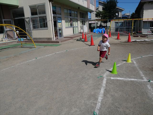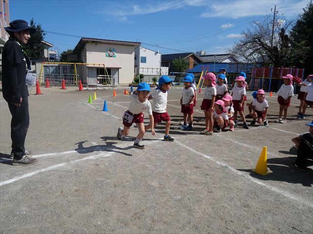 その後はお部屋で運動会の練習をしました。エビカニクスはみんなとっても上手☆当日も今日のように自信をもって踊ってほしいです!また、かけっこでは「お外は広くて、みんなのお返事の声が小さいとおうちの人まで聞こえなくなっちゃうから、大きな声でお返事してみよう!」と伝えると、元気いっぱいにお返事してくれました!本番まであと二日。残りの練習も頑張ります☆