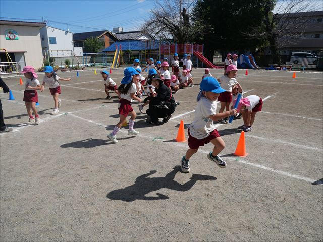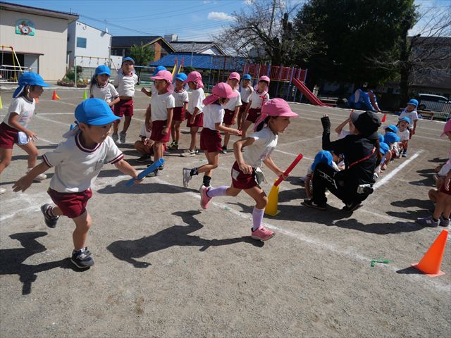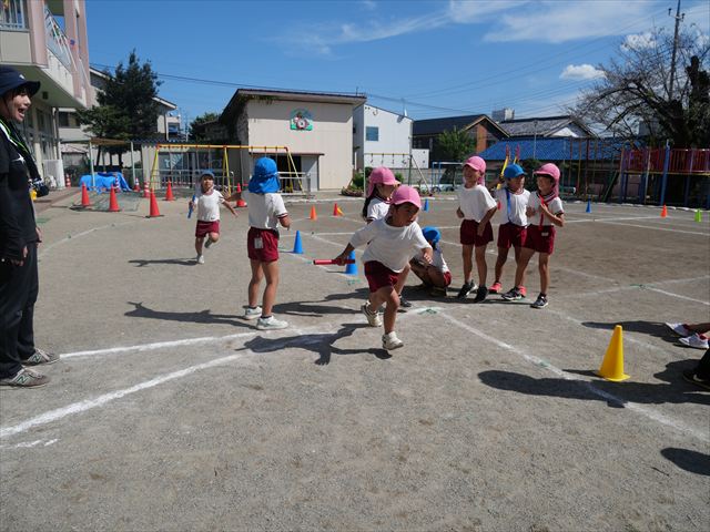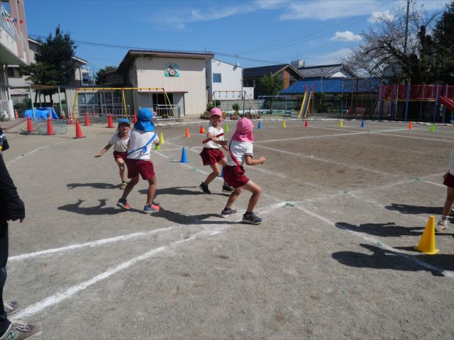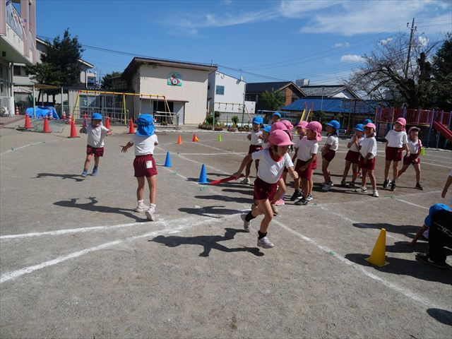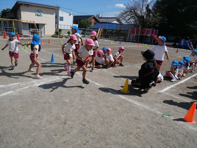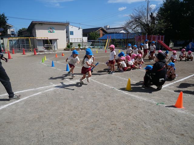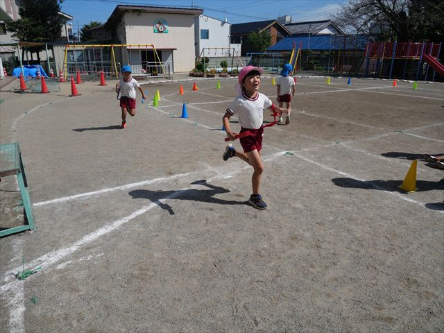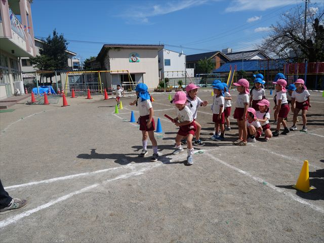 クラス対抗リレーをしました。抜いて抜かされて、さすが年長さんと言った白熱した戦いでした!本番も楽しみです!