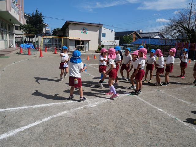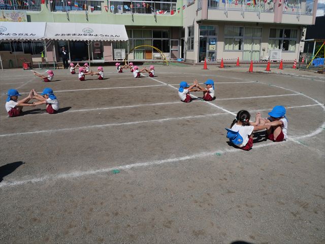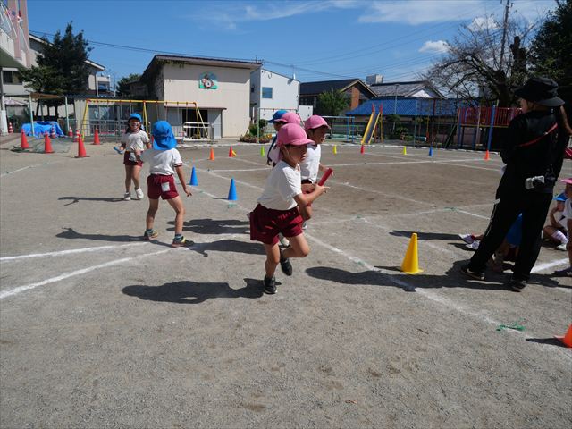 今日の運動会練習はリレーと太鼓の練習をしました。今日のリレーはさくら組1勝、つつじ組1勝でとてもいい勝負でした!本番も楽しみです!太鼓は、昨日教室での練習で確認した細かい部分を思い出しながら取り組みました。たくさん練習した成果を発揮できるように本番も頑張るぞー!