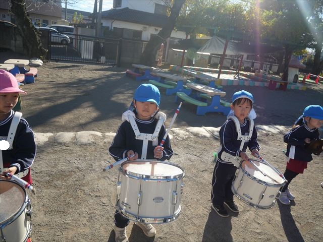 会場が手狭でバルーンを含め盛大にやれなかったのがちょっと残念でした。申し訳ありませんでした。でも、今年度の年長さんの鼓笛隊最後の締めくくりの晴れ姿でした。年長さんみんな、1年間鼓笛隊本当によく頑張りました。えらかったです!\(^_^)/