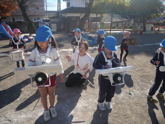 今日30日(日)は、大間々町「サステナホコ天マルシェ2025」が大間々町大通り5・6丁目で賑やかに開催されました。このイベントを盛り上げるために、年長さんも鼓笛隊演奏を発表して頑張りました!(^_^)v