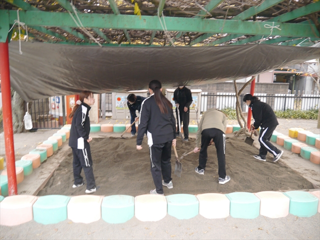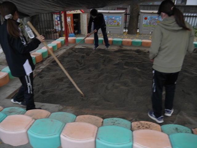「砂遊び」は子どもたちにとって「最高の遊び」であり、「砂場」は、子どもたちの「最高の社交場」です。 毎日たくさんの子どもたちが「砂遊び」をして楽しんでいて良いのですが、一つ難点があります。それは、子どもたちが砂場の砂を園庭へ持ちだして遊ぶので、砂場の砂がなくなってしまうということです。(^^;)