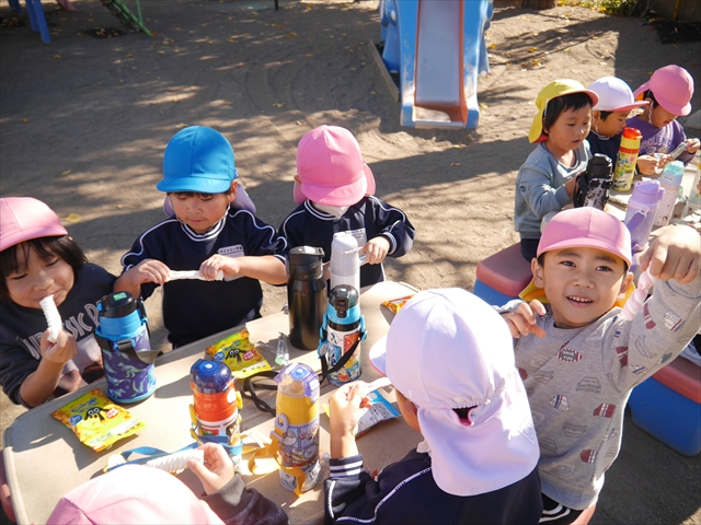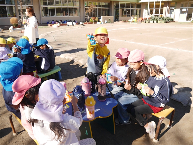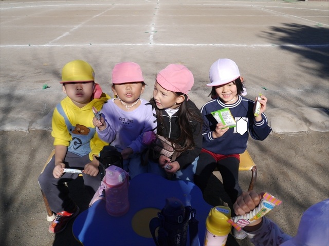 今日は、午前中に他園交流会で阿左美幼稚園のお友だちとドジボールをしたり、リレーをしたりして楽しみました!詳しくは他園交流の投稿をご覧ください!