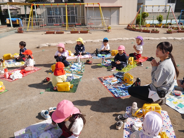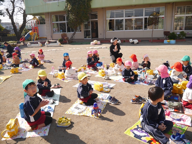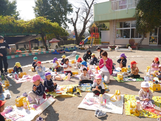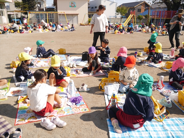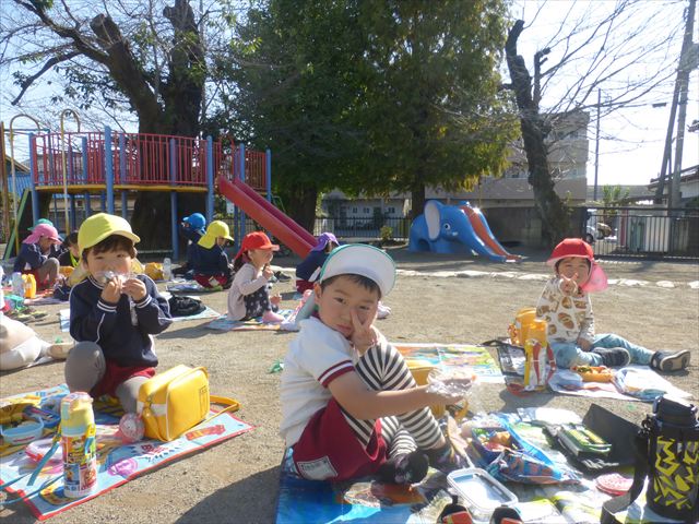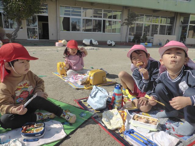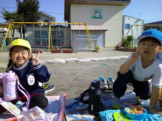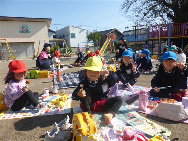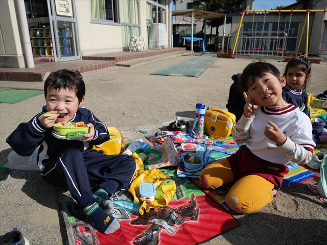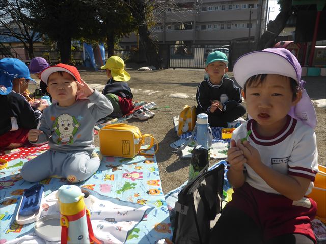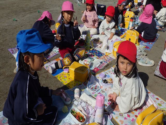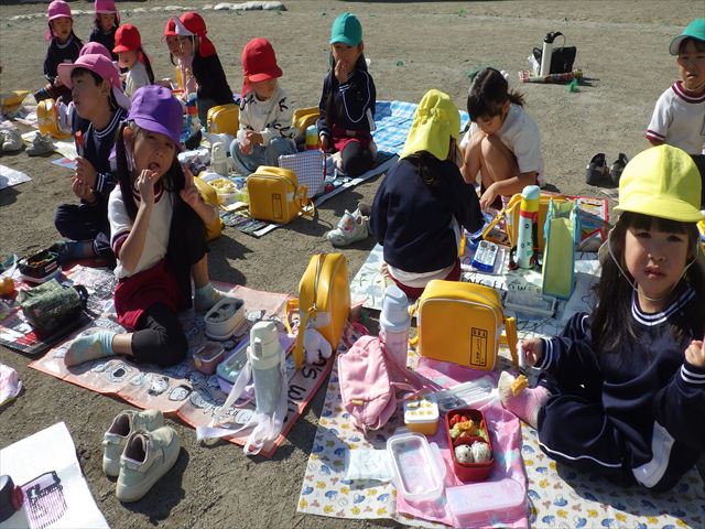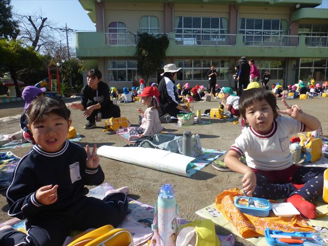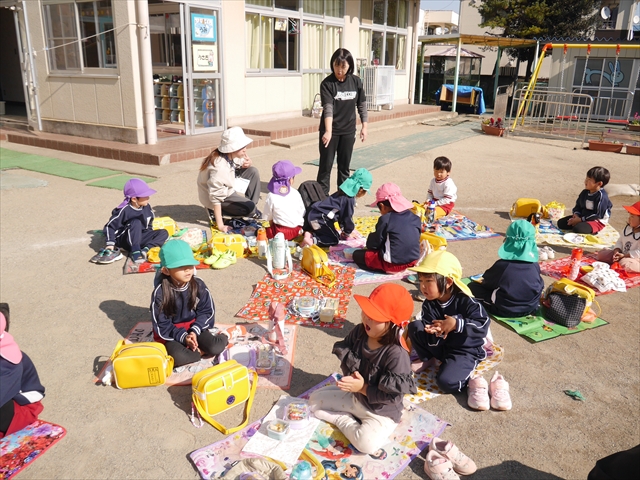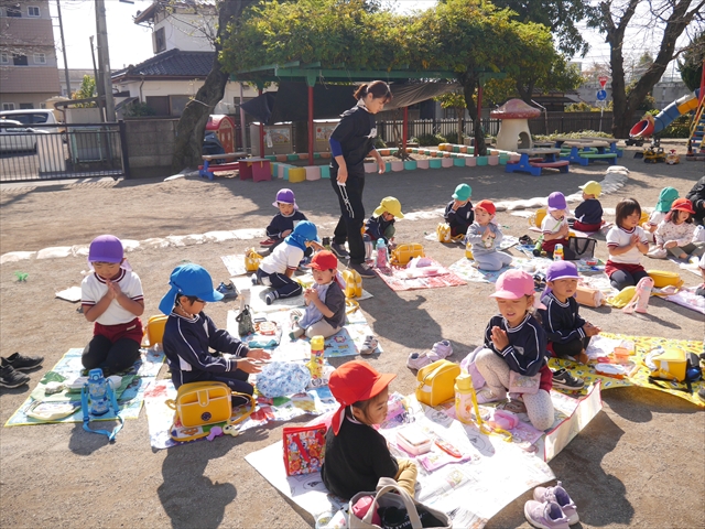 今日は、「ディスクドック」イベントあと、縦割り保育活動「会食」でした。秋の心地よい天候でしたので、園庭でみんな気持ち良く食べることができました。縦割りのバディの子と仲良くみんなで食べたので、「手作り弁当」も美味しさも倍増したようです!ごちそうさまでした!(^_^)b ヘ(^o^)/
