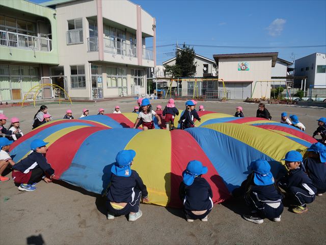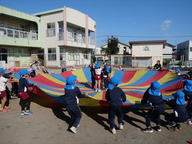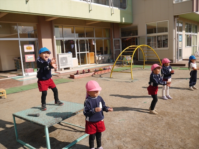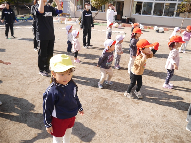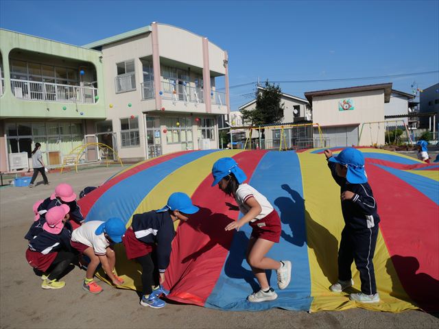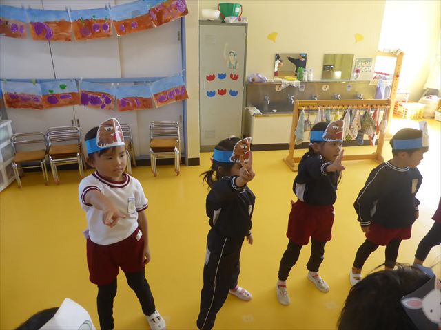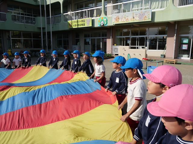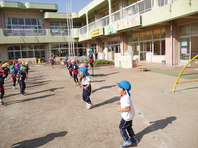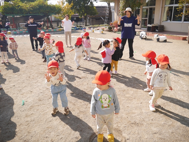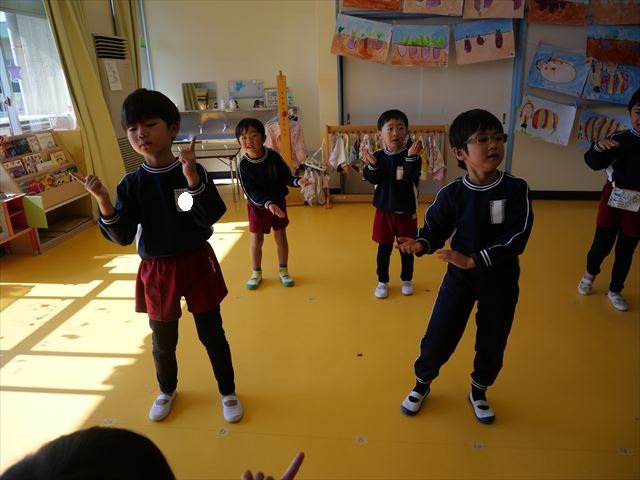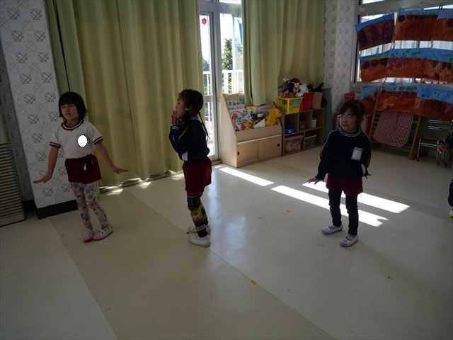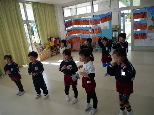 今日は朝から心地よい秋晴れの天気でした。園庭で子どもたちも気持ちよさそうに遊んでました。朝の活動では、久しぶりに「やんちゃ怪獣どっか~ん体操」をしました!みんな元気いっぱい体操を頑張りました!まる!(^